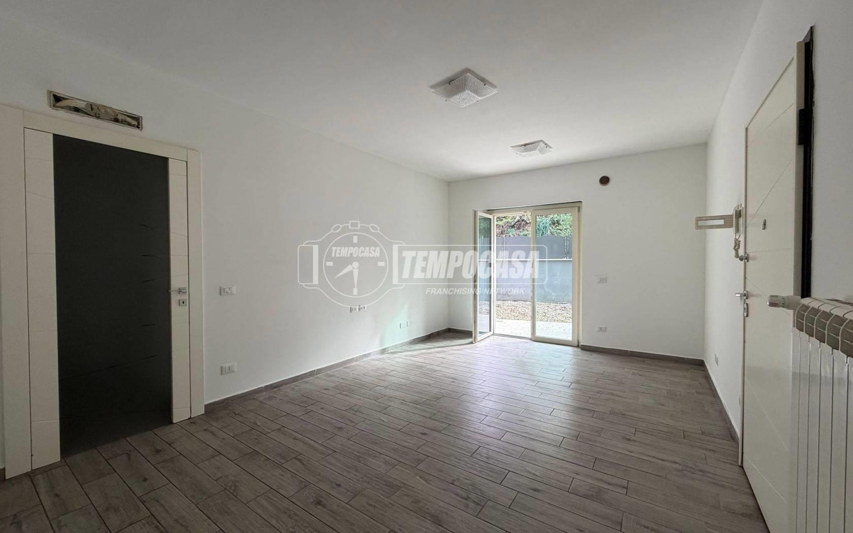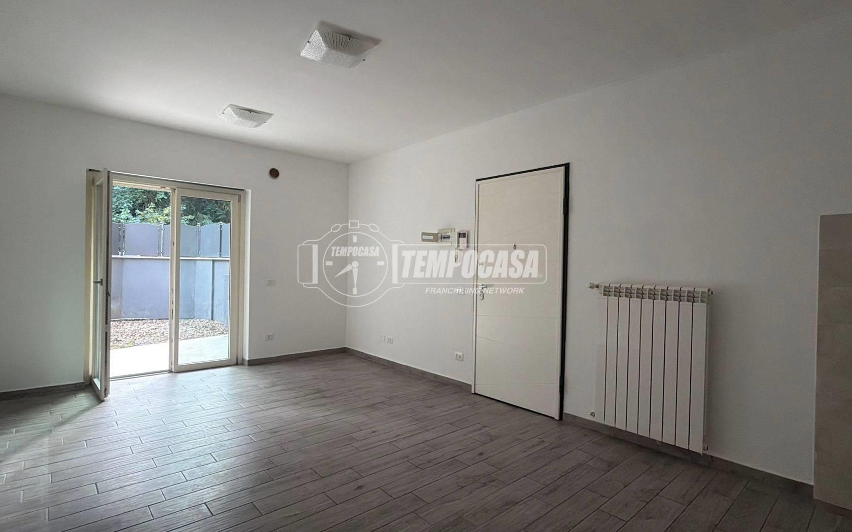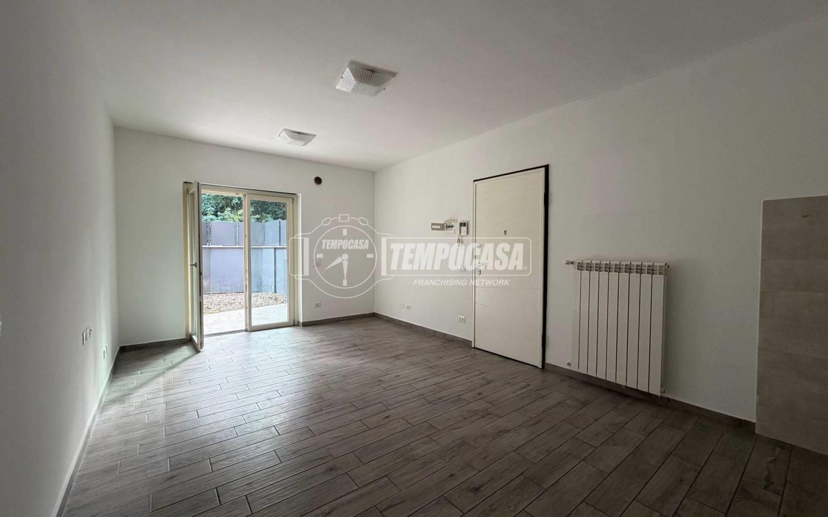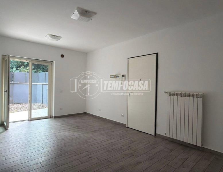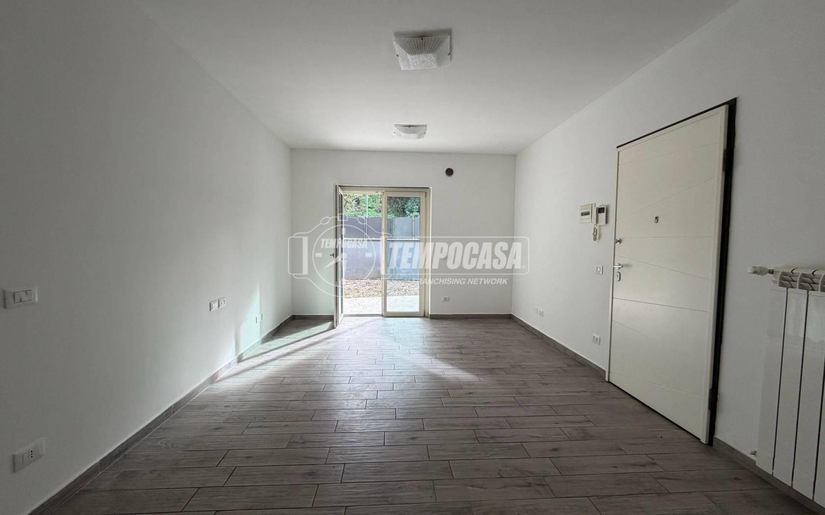L’ingresso principale apre su un accogliente salone con angolo cottura, caratterizzato da buona luminosità e dall’accesso diretto al giardino frontale, che rappresenta un naturale prolungamento della zona giorno. Attraverso un disimpegno si accede alla zona notte, composta da una cameretta, una camera matrimoniale e un bagno finestrato con doccia. Il disimpegno ospita inoltre una seconda porta blindata che permette un ulteriore ingresso indipendente dal giardino, dettaglio che aumenta la funzionalità dell’immobile.