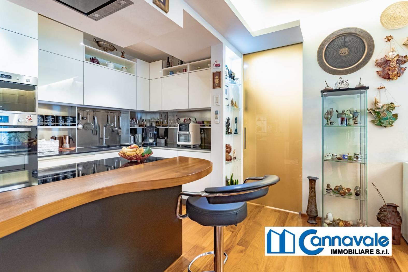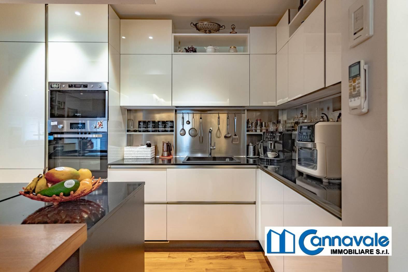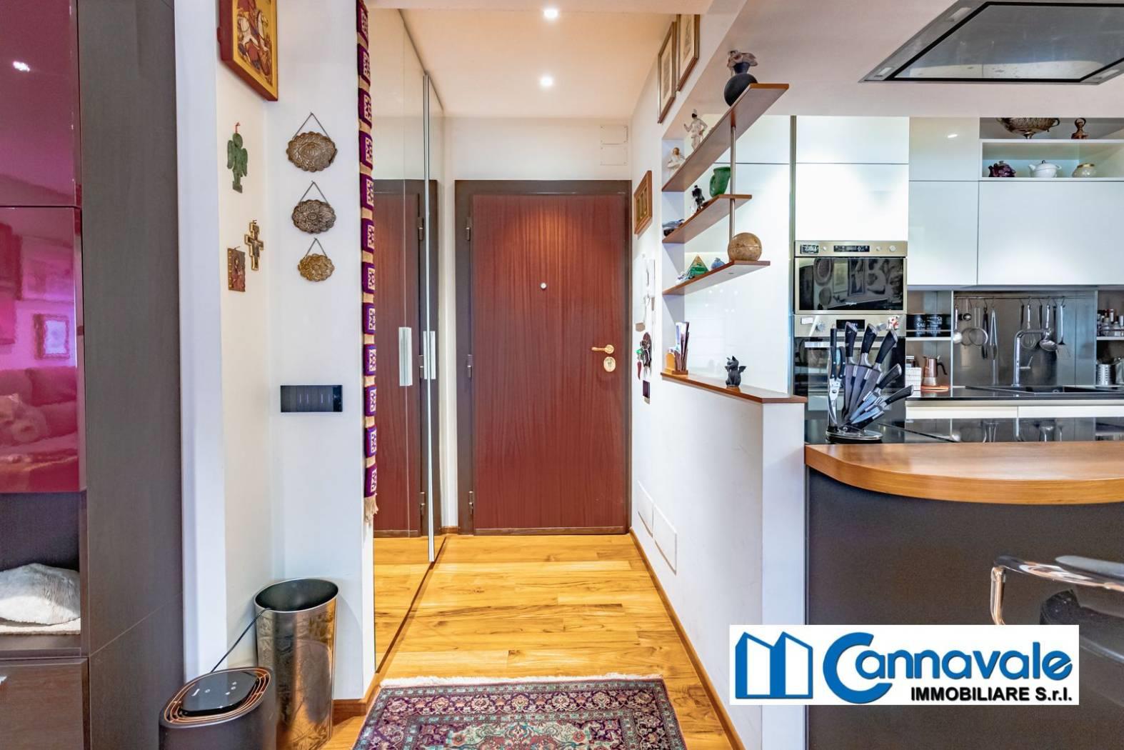 • Esterni: L'unità gode di due balconi di pertinenza provvisti di tende da sole retraibili. L'ininterrotta esposizione a Sud/Ovest assicura un massiccio irraggiamento solare e un'illuminazione prolungata fino al tramonto.