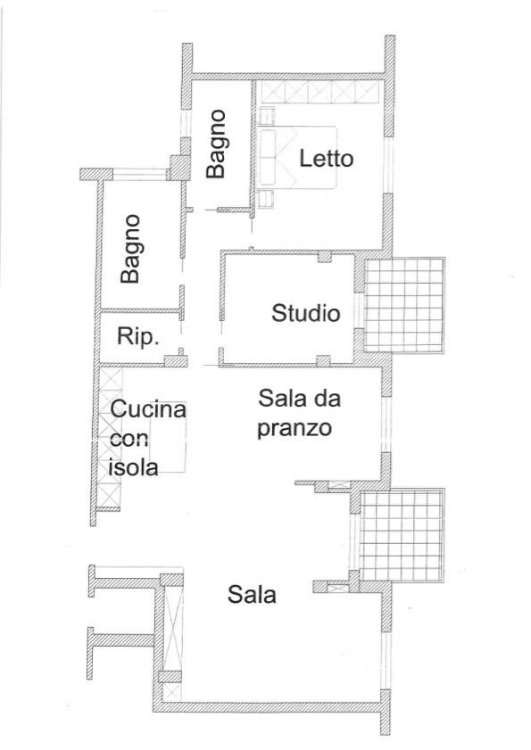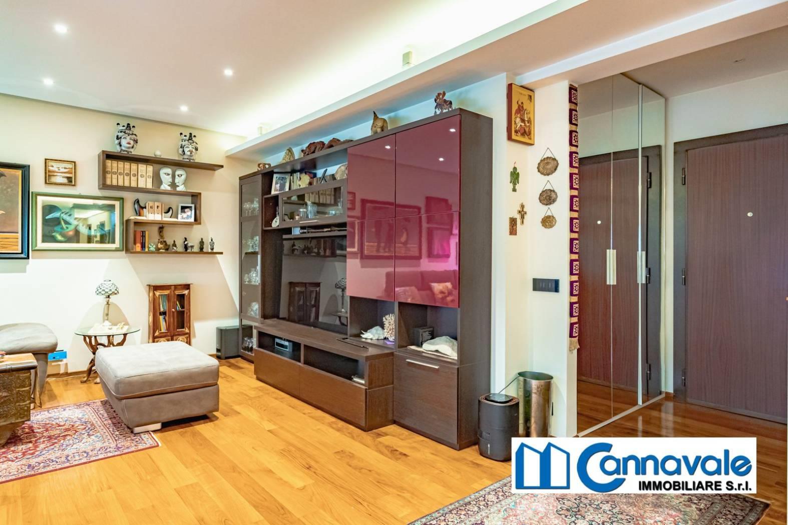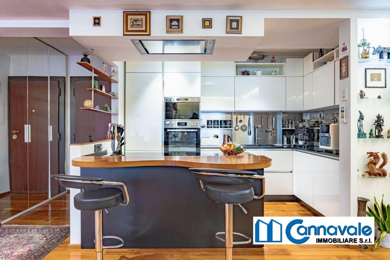 • Esterni: L'unità gode di due balconi di pertinenza provvisti di tende da sole retraibili. L'ininterrotta esposizione a Sud/Ovest assicura un massiccio irraggiamento solare e un'illuminazione prolungata fino al tramonto.