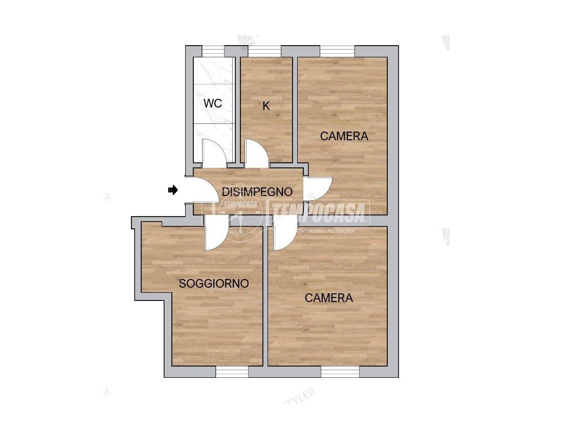 L'appartamento si apre su un ingresso con disimpegno e offre una distribuzione classica e funzionale degli spazi: soggiorno, cucina separata, camera matrimoniale, seconda camera, bagno finestrato. Gli ambienti sono ben distribuiti e offrono ottime potenzialità di personalizzazione.