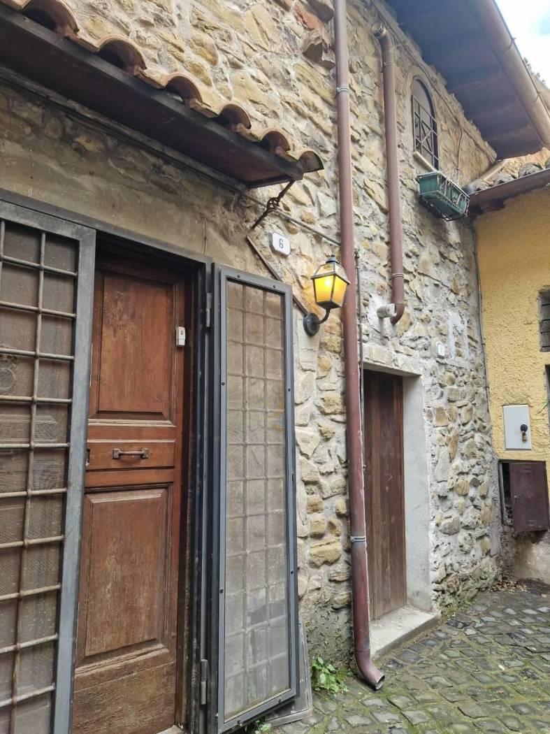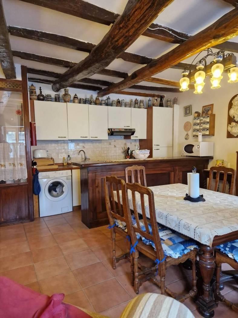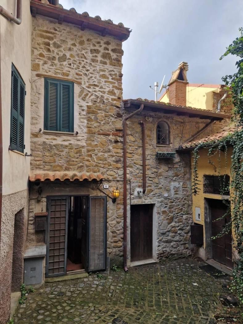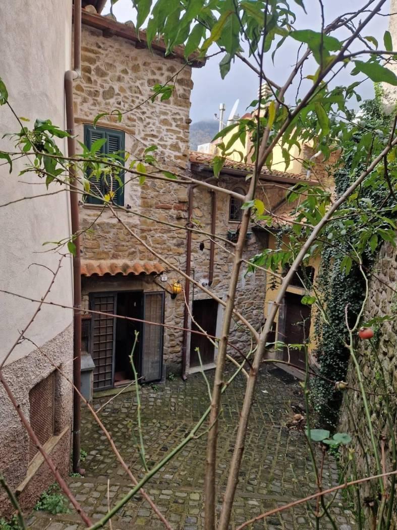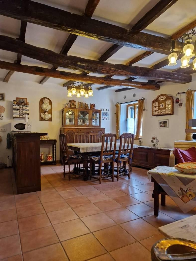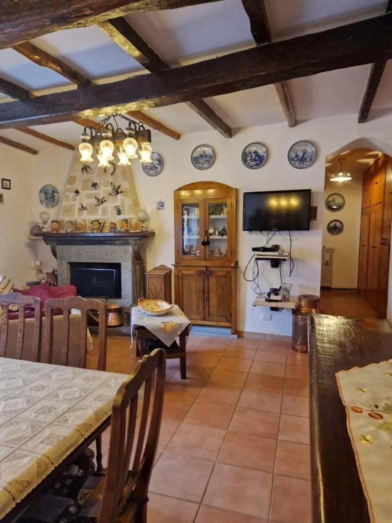 Al piano terra, un piccolo cortile introduce alla casa che all'ingresso è caratterizzata da un disimpegno strutturato da pareti a vetri. Seguendo troviamo un luminoso e accogliente salone con cucina a vista, camino in pietra, il tutto caratterizzato da travi in legno a vista che attraversano il soffitto, regalando un'atmosfera calda e accogliente. Attraverso un corridoio, valorizzato da armadi a muro in legno su misura da entrambi i lati che sfruttano al massimo lo spazio senza appesantire l'ambiente, accediamo alla zona notte dove troviamo una cameretta funzionale e ben adattabile alle proprie esigenze ed una scala in legno. Salendo la scala si accede al primo piano, un ambiente raccolto e accogliente, caratterizzato dalla presenza di una camera matrimoniale con tetto a travi in legno a vista ed un bagno completamente ristrutturato dotato di finiture moderne e funzionali.
