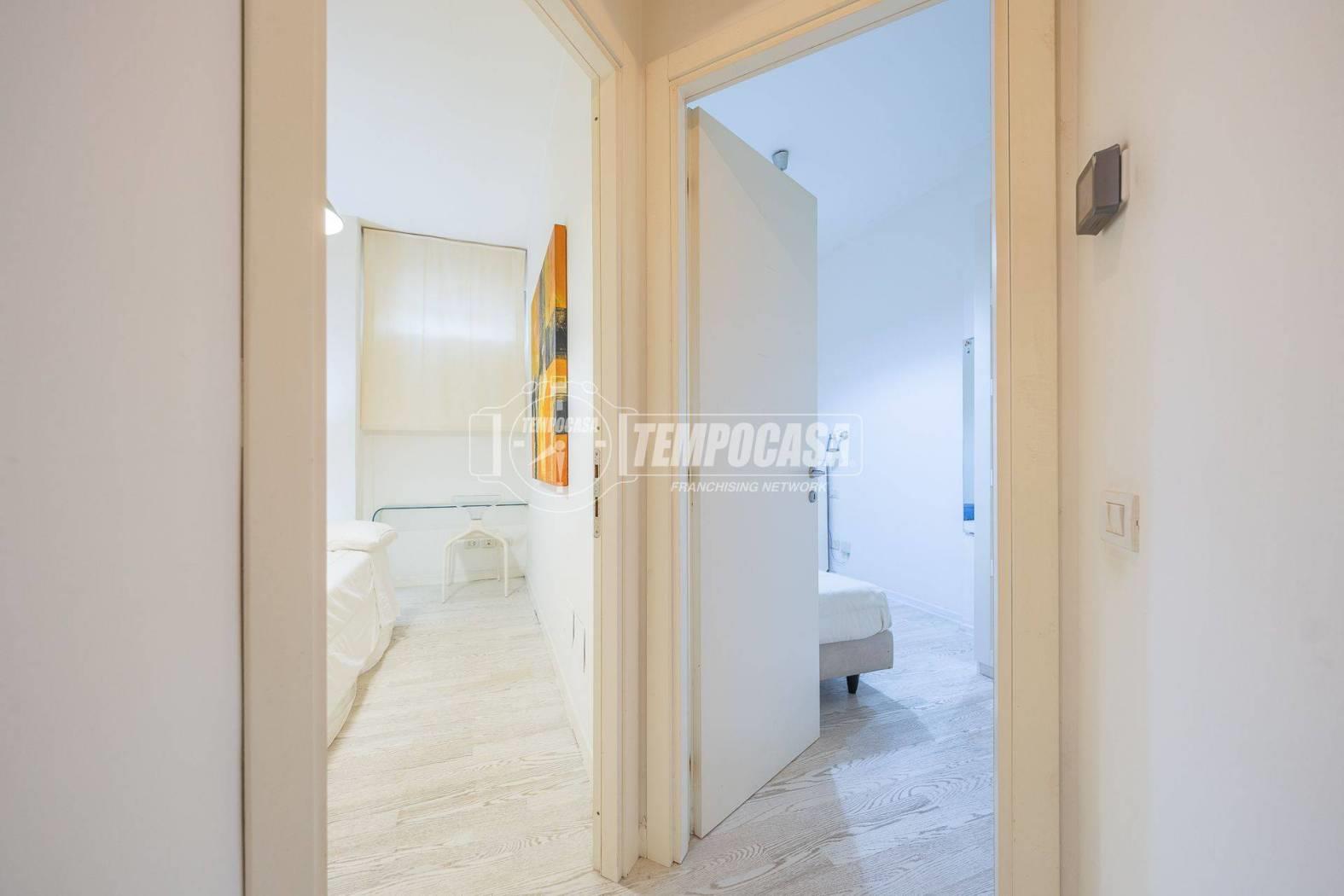 L’immobile, posto al piano S1 di cinque, si compone di soggiorno con cucina a vista in un accogliente open space, due camere da letto matrimoniale di cui una con bagno en suite e secondo bagno per ospiti.