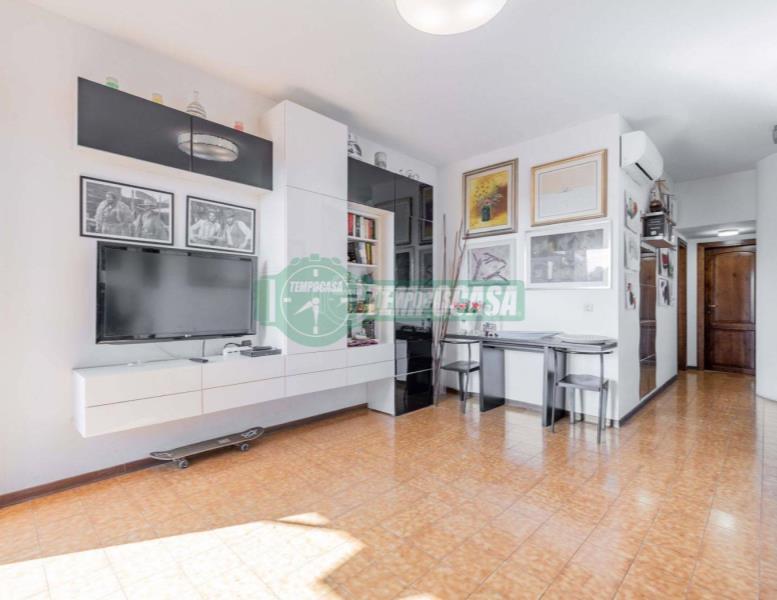All’ingresso, il soggiorno e la cucina si fondono in un ambiente luminoso e accogliente, grazie alla luce naturale che filtra dalla finestra e dalla porta finestra con accesso diretto al terrazzo semi-abitabile. Un luogo ideale per godersi le belle giornate, pranzare all’aperto e rilassarsi in compagnia di amici e familiari.