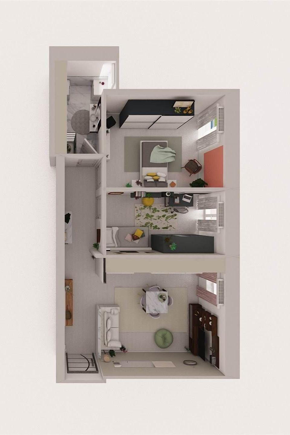 Il render3D fornisce una ipotesi di arredo realizzato con le misure effettive dello stato dei luoghi dell'immobile. Tenendo conto anche del posizionamento degli impianti di bagno e cucina.