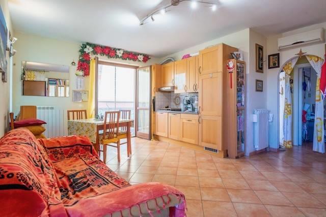 L’immobile, ben distribuito e in ottimo stato manutentivo, è così composto: soggiorno con cucina a vista, due camere, due bagni, balcone.