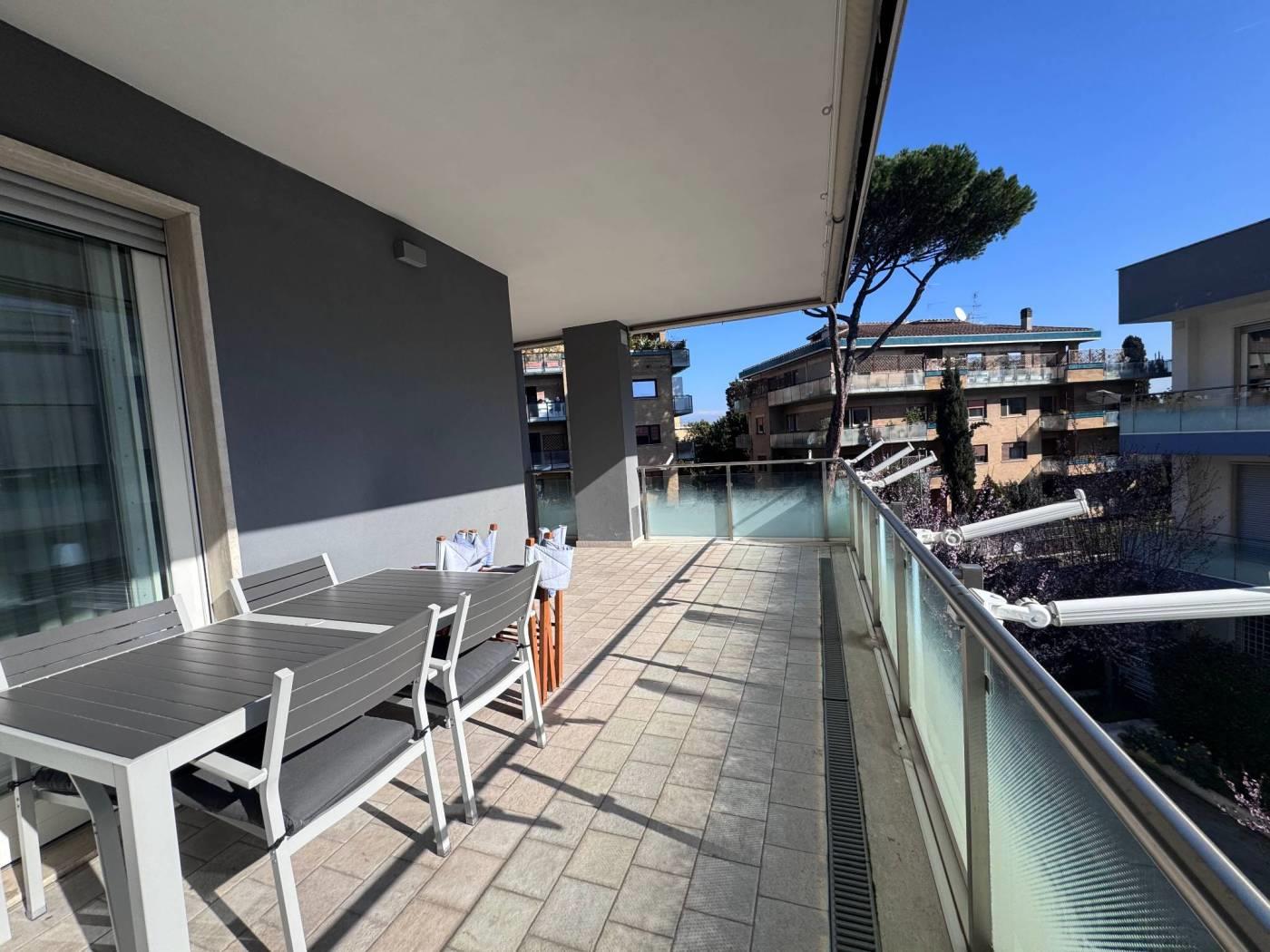 Viale Cortina D'Ampezzo- All'interno di un nuovo ed elegante complesso immobiliare di Nuova Costruzione Classe Energetica " A" composto da tre Palazzine in tinta, con incantevoli giardini condominiali, costruito con le più moderne tecnologie antisismiche, dotato di portierato e videosorveglianza L' immobile ha un doppio accesso sia da Viale Cortina D'Ampezzo che da via Misurina. L'Appartamento misura circa 85 mq interni più 25 mq di terrazzi, risulta così composto: soggiorno con cucina a vista, ed uscita direttamente sul terrazzo, due camere da letto, una matrimoniale con cabina armadio e bagno, la seconda camera è singola con uscite sui terrazzi , e due grandi servizi, uno con vasca idromassaggio e l'altro con doccia ambedue finestrati. L'immobile si presenta in ottime condizioni interne, pavimento in parquet, climatizzatori in tutte le stanze, riscaldamento autonomo, infissi di ultima generazione, domotica, video citofono , porta blindata. Completano la proprietà una grande cantina al pian terreno ed un Box Auto. La zona è molto tranquilla e silenziosa, per lo più residenziale con molti spazi verdi, tra l'altro è molto interessante e da tener conto il bar Cortina uno dei locali storici di Roma. I servizi non mancano; Supermercati, ludoteche, campi da calcio, inoltre molto facile raggiungere il centro di Roma in pochi minuti anche con i mezzi pubblici. Ottimo investimento. Per maggiori informazioni e per poter visionare l'immobile contattare la DeaCasa Roma al numero 3385844006
