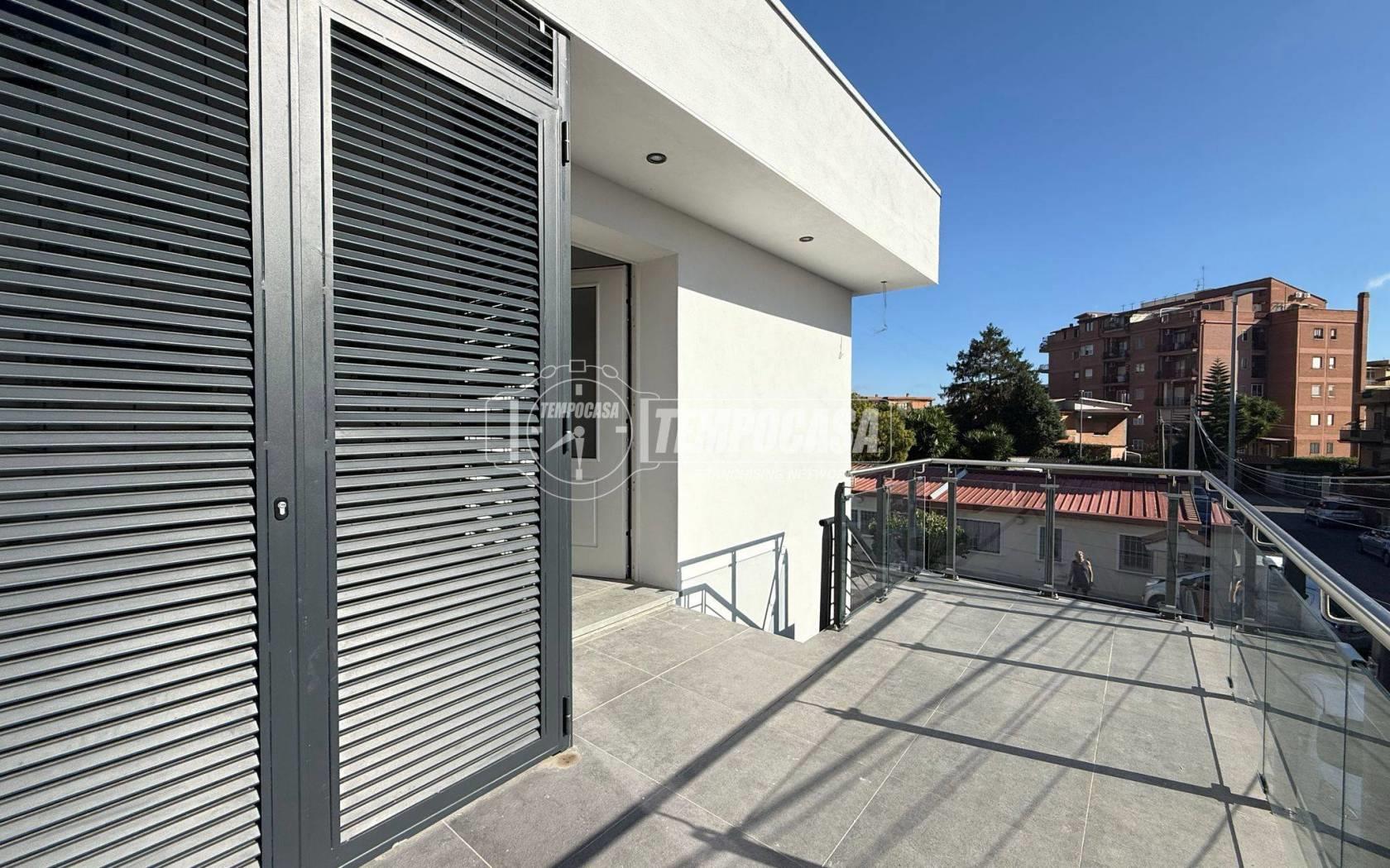Completa la proprietà un ampio terrazzo di 21 mq, ideale per momenti di relax all’aperto, delimitato da eleganti barriere in vetro temprato che ne esaltano la luminosità e il design moderno.