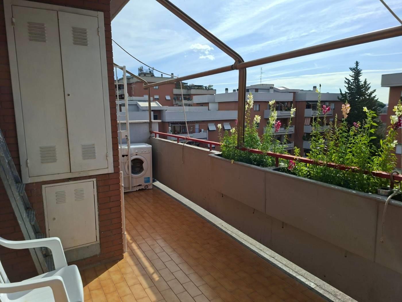 PONTE MAMMOLO: precisamente in Via Giuseppe Rosaccio proponiamo in vendita un ampio trilocale di circa 90 mq commerciali al piano quinto ed ultimo. L'appartamento è composto da salone, cucina, due ampie camere, disimpegno, due bagni di cui uno con finestra, balcone vivibile, una cantina al piano seminterrato di circa 6 mq. ed un posto auto coperto di circa 13 mq.. L'immobile è in buone condizioni ed è disponibile da subito. L'esposizione è unica a Sud e quindi molto soleggiata e luminosa visto anche il piano alto. Il riscaldamento è autonomo ed il condizionamento è in pompa di calore caldo/freddo. L’appartamento si trova in una zona molto tranquilla e ben collegata, a ridosso de GRA e della Via Tiburtina con la presenza di aree verdi. Nelle vicinanze ci sono diverse linee di trasporto pubblico (bus e metro) che rendono agevoli i collegamenti verso il centro della città.