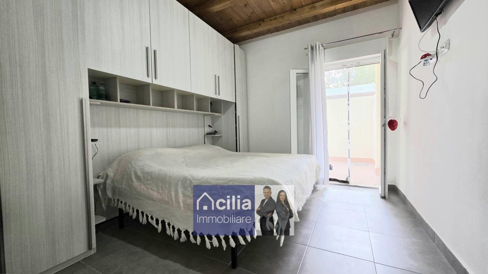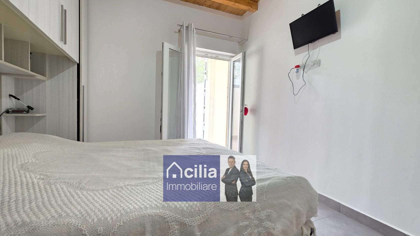 L’ingresso apre su un luminoso soggiorno con angolo cottura e tutti gli spazi per posizionare un divano una tv ed un tavolo per il pranzo, un bagno con doccia, una camera da letto matrimoniale con bagno privato e accesso diretto al giardino nel retro.