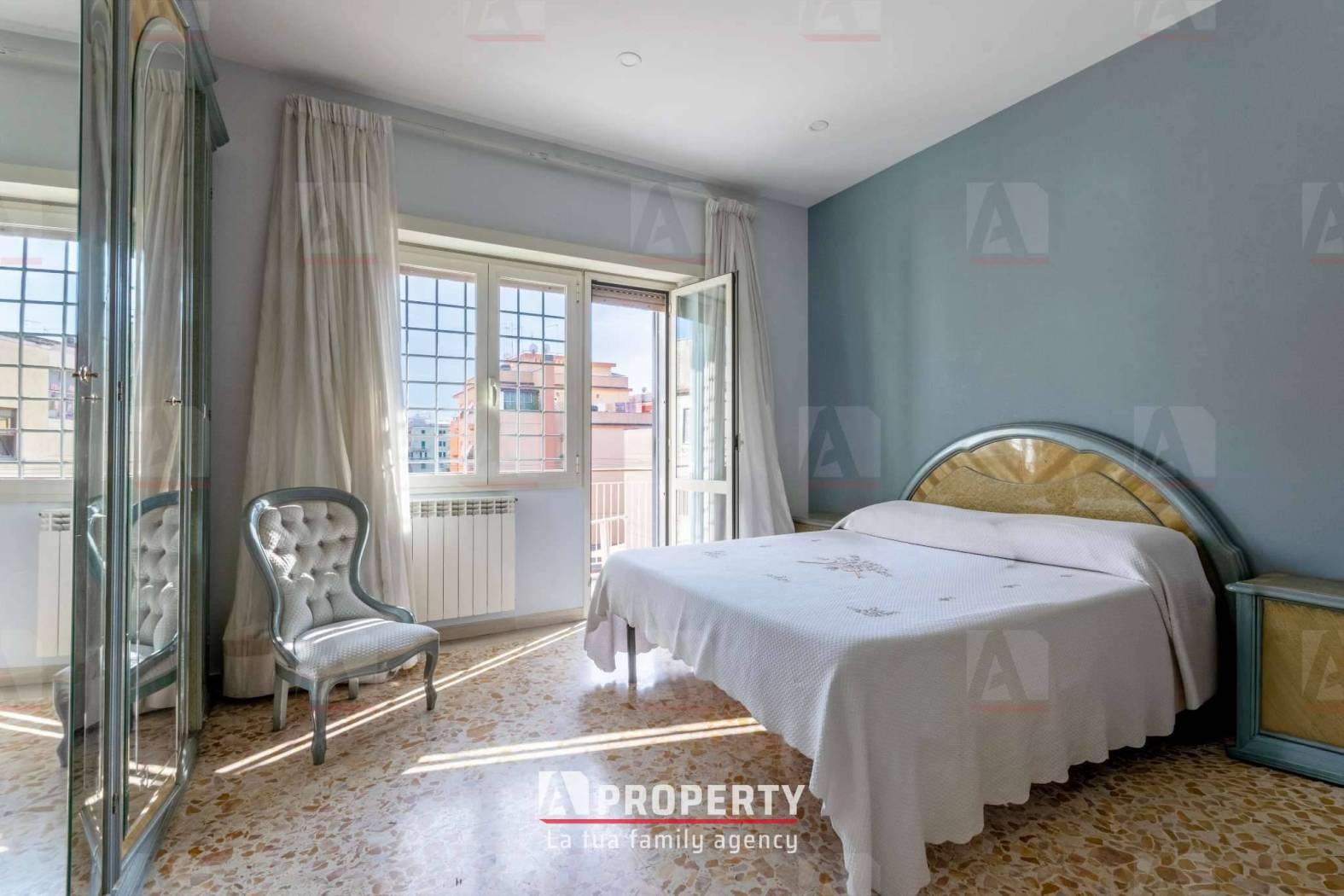 Sul lato destro, la zona notte è razionalizzata con gusto e privacy, ospitando una camera matrimoniale con balcone e una seconda camera ampia e luminosa, ideale come stanza per ragazzi o studio personale.