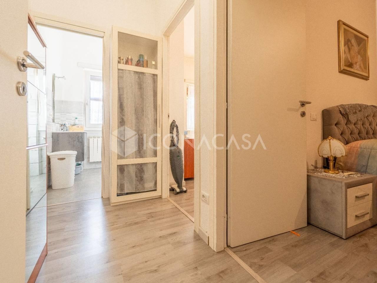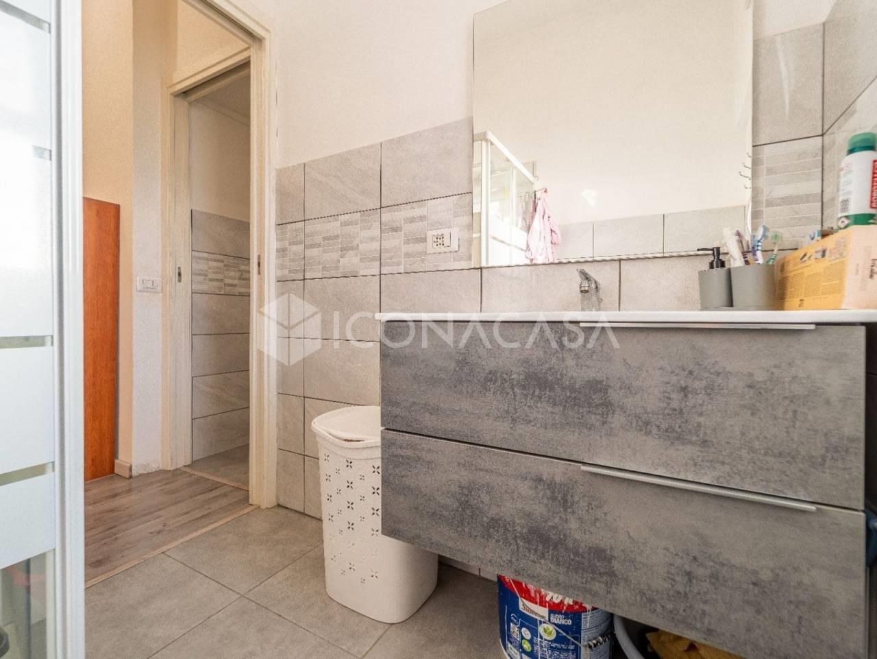 INTERNO: Internamente la soluzione si presenta in ottime condizioni grazie alla recente ristrutturazione fatta nel 2023. L’immobile è dotato di tre split per l’aria condizionata, installati nel soggiorno, nella cucina e nella camera da letto. Gli infissi sono in PVC con doppio vetro, completi di tapparelle elettriche nelle camere da letto e nel soggiorno, oltre a inferriate presenti in tutti gli ambienti. Le porte sono in legno tamburato bianco, con apertura a scomparsa nei bagni e a battente negli altri locali. Il riscaldamento è autonomo a radiatori. Le spese condominiali ammontano a circa 65 euro mensili.