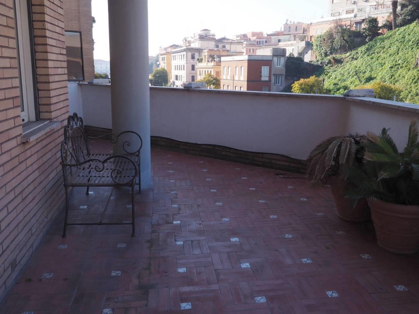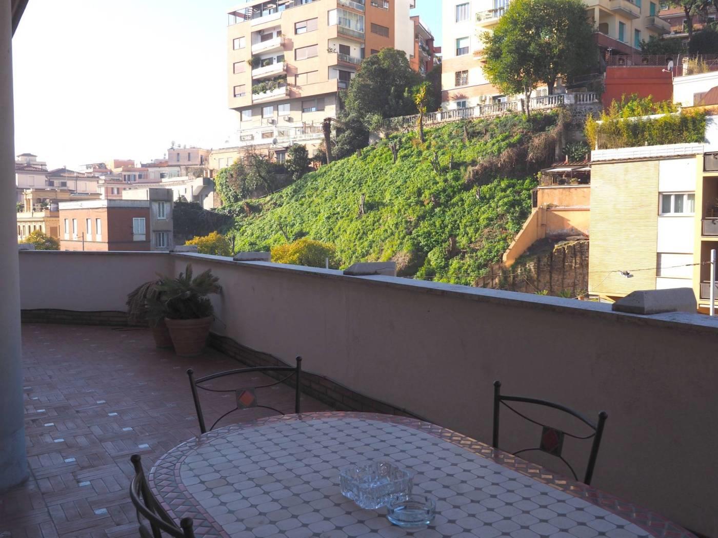 L'ampio spazio esterno si affaccia su Monteverde Vecchio e offre una vista gradevole a 180 gradi con esposizione a Sud-Ovest.