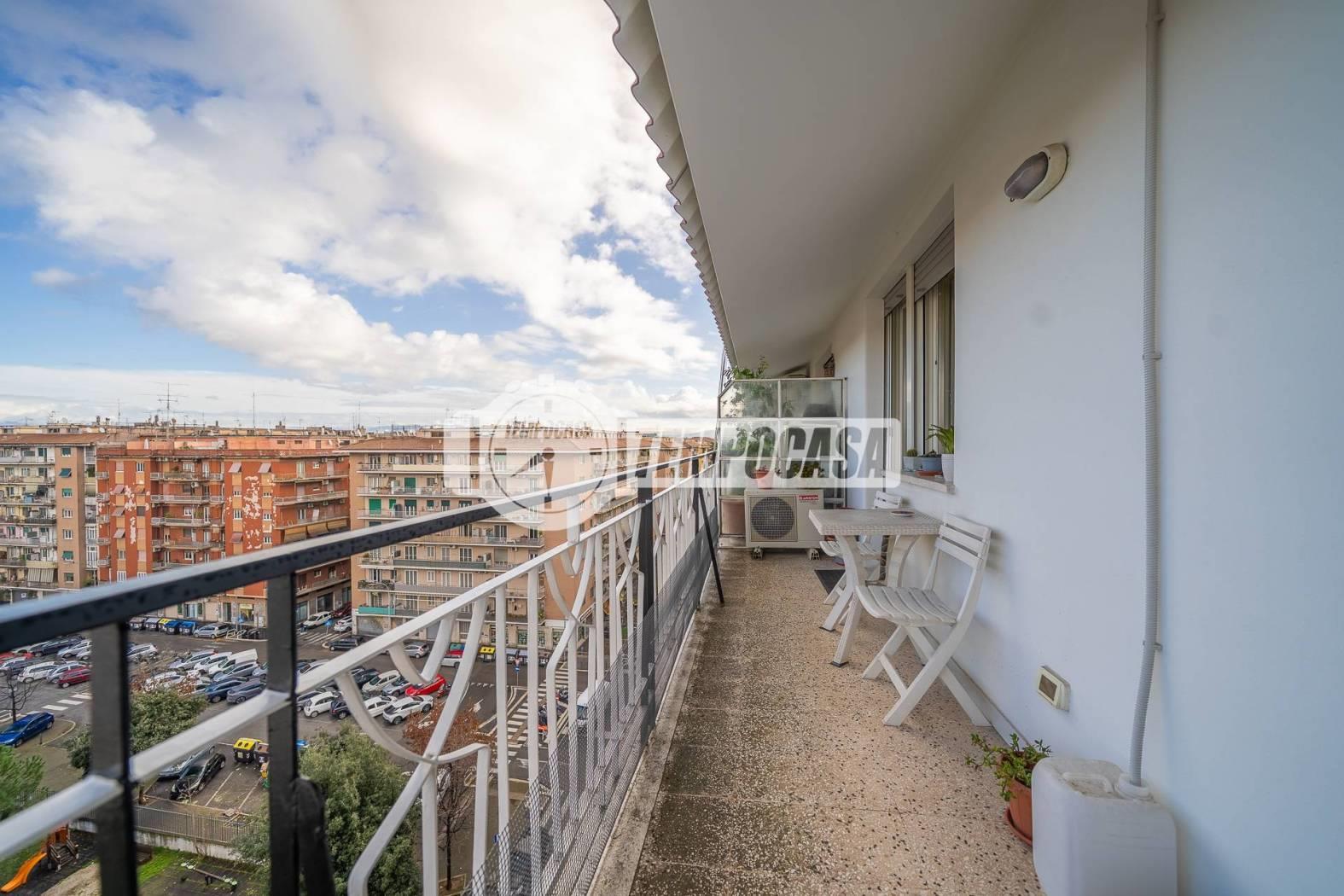 In Via Claudio Asello 56, nelle prossimità della fermata della Metro A Lucio Sestio, proponiamo in vendita, all’ottavo piano di nove di uno splendido stabile in cortina composto di tre scale, ampio trilocale così composto: Ingresso, Soggiorno con angolo cottura, disimpegno, due Camere, Bagno, Ripostiglio e Balcone perimetrale che abbraccia l’intero appartamento.