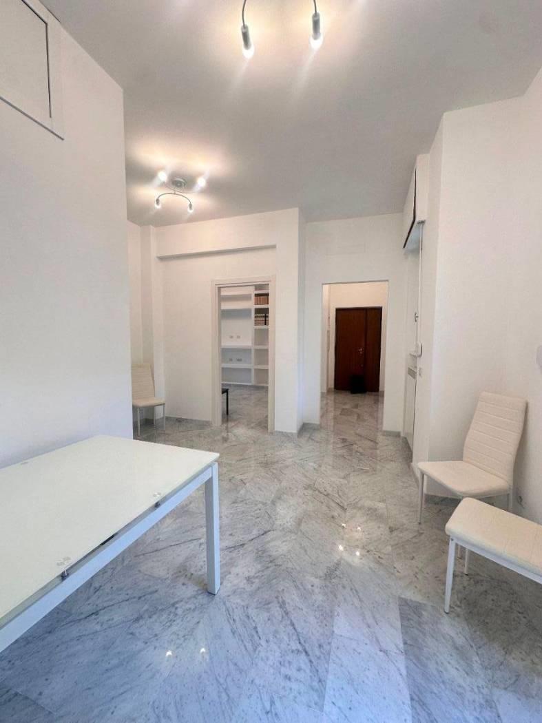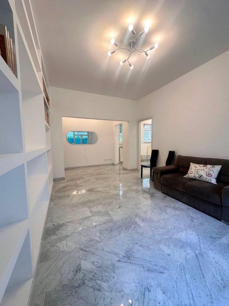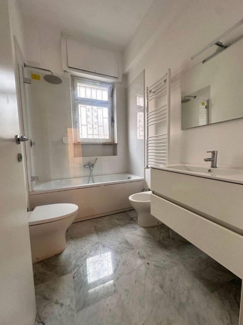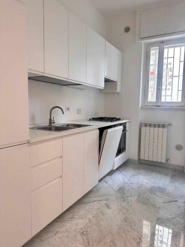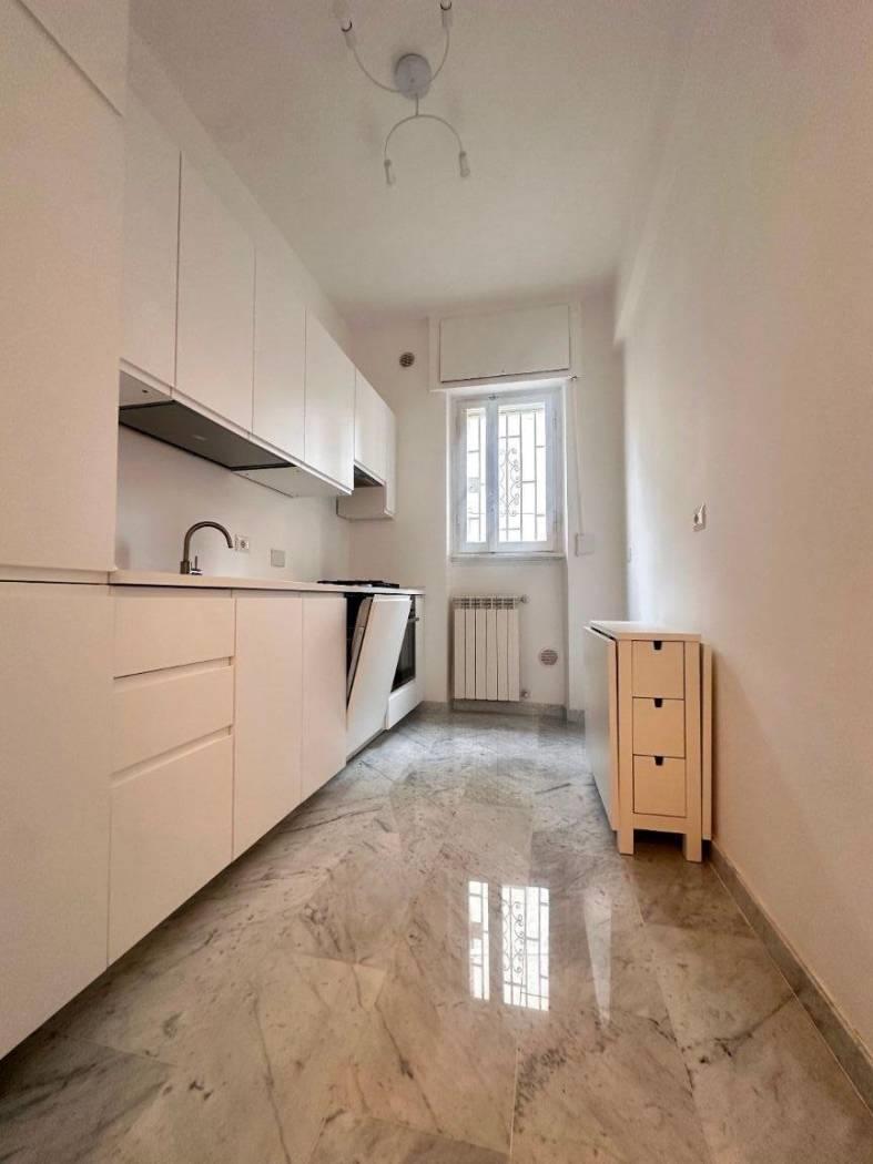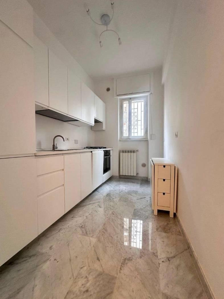 Quartiere Parioli, affittasi appartamento, all'interno di uno stabile signorile dotato di servizio portineria, completamente ristrutturato, rifinito, arredato con mobili nuovi, piano 1°, tripla esposizione, molto silenzioso, luminoso, composto da un ampio soggiorno a vista, disimpegno con zona pranzo, cucina, 2 camera da letto, due bagni e balconi. L'appartamento è dotato di lavatrice, caldaia gas autonoma (sia per erogazione acqua calda sanitaria che per riscaldamenti), forno e lavastoviglie. Ideale per referenziati.
