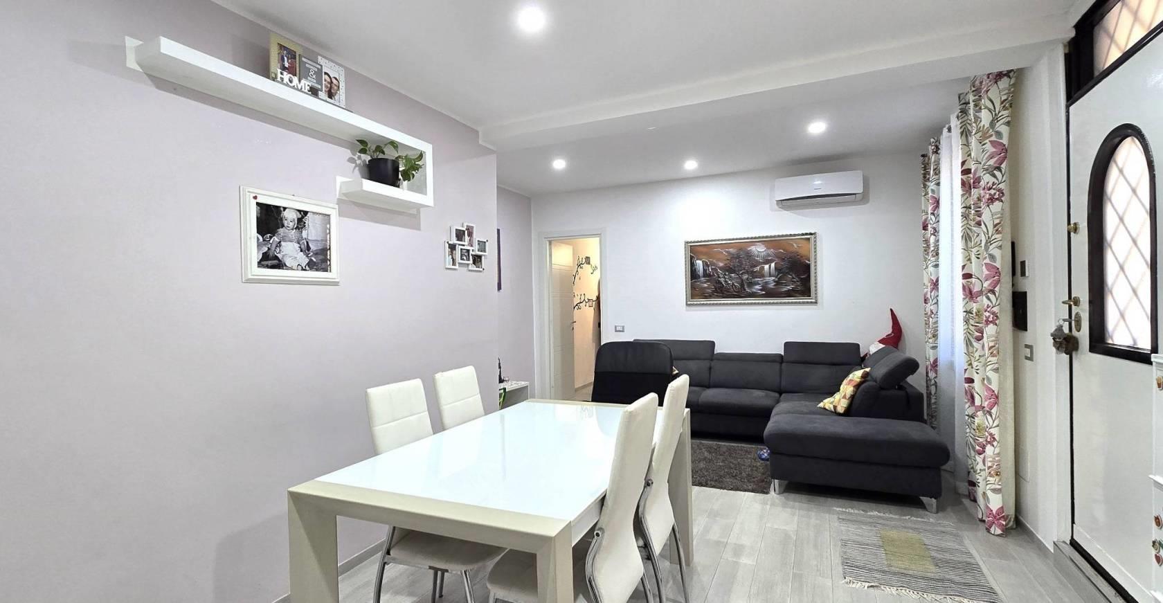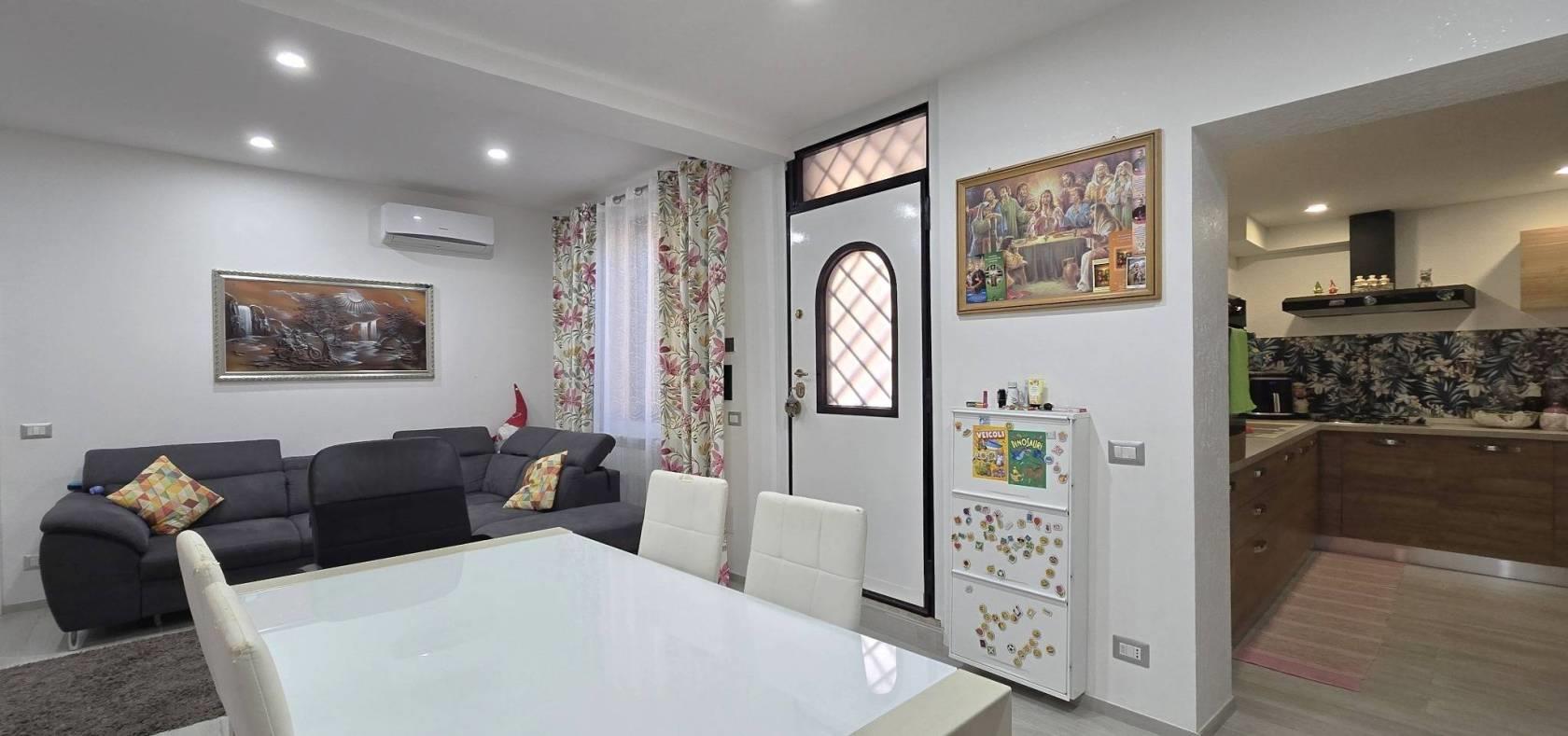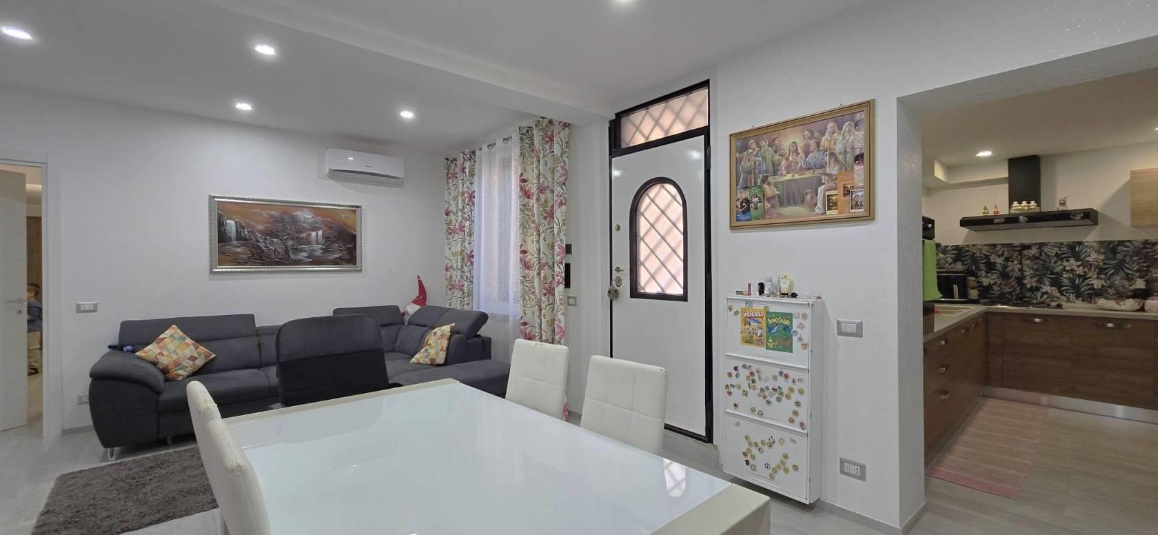 La Rustica – Via Bisegna – In palazzina di tre piani in cortina proponiamo in vendita un bell’appartamento posto al piano terra di 70 mq. Ca. con entrata indipendente. L’appartamento è composto da una bella zona giorno con un ampio salone e con cucina abitabile. Il corridoio da accesso alla zona notte con due ampie camere da letto e un bagno con doccia. Completano l’appartamento un ampio balcone terrazzato e un ampio cortile terrazzato. Sono di pertinenza dell’appartamento due posti auto esterni in cortile chiuso con cancello automatico. L’appartamento è stato completamente ristrutturato due anni fa ed è rifinito con gusto. Ha l’impianto di riscaldamento autonomo con i radiatori ed è dotato di condizionatori a pompa caldo/freddo. Le finestre in pvc rinforzato hanno tripli vetri e persiane in alluminio e inferiate di protezione. Tutte le finestre e portefinestre hanno le zanzariere.