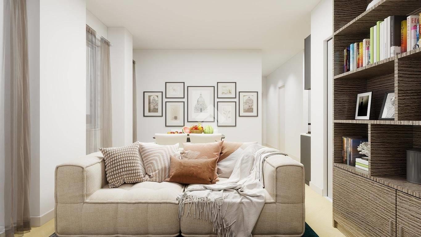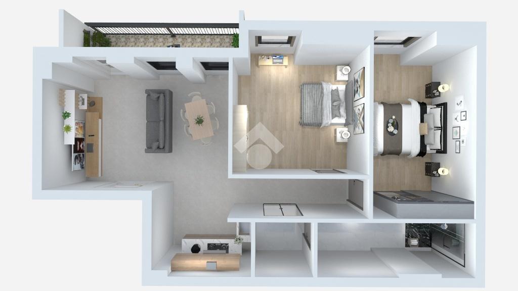L’appartamento si compone da un soggiorno con angolo cottura, valorizzato dall’accesso diretto al balcone, due confortevoli camere da letto, un bagno con doccia e una pratica zona antibagno che può diventare un perfetto angolo lavanderia.