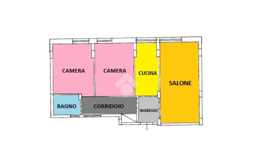 Internamente si compone di ingresso con corridoio, salone, due camere da letto, cucina abitabile e bagno.