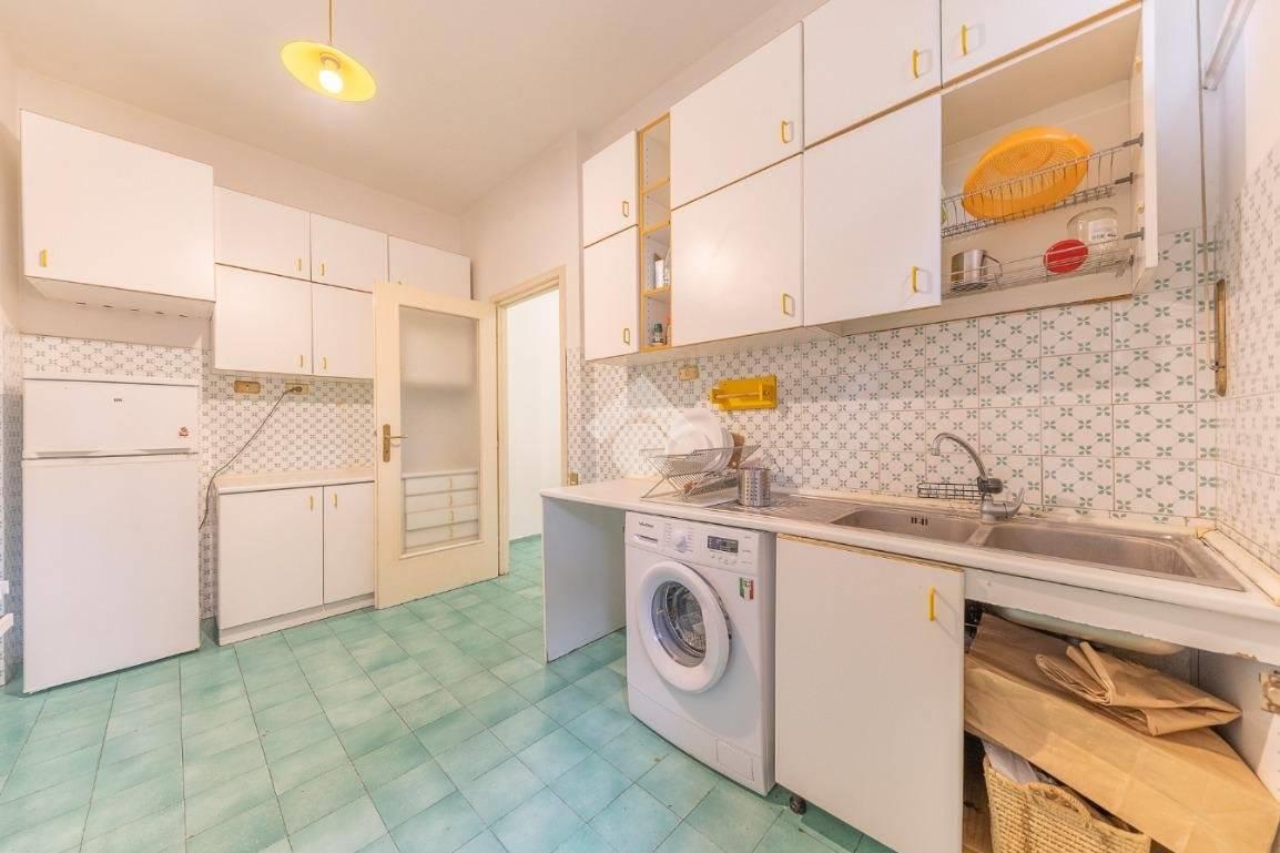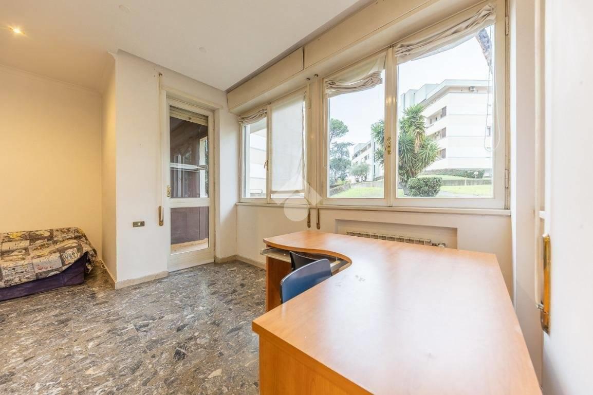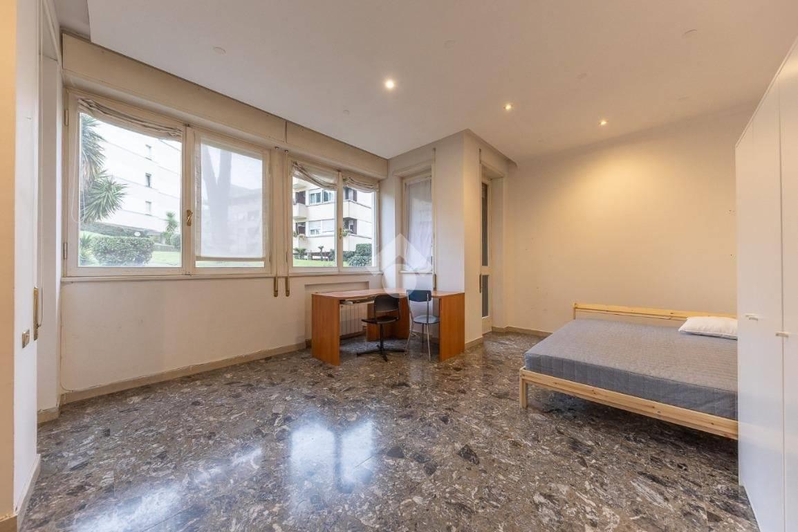 Una delle vie più servite del quartiere, all'interno di un comprensorio immerso nel verde con servizio di portierato, proponiamo al primo piano di una palazzina in tinta, un trilocale di circa 120 mq.