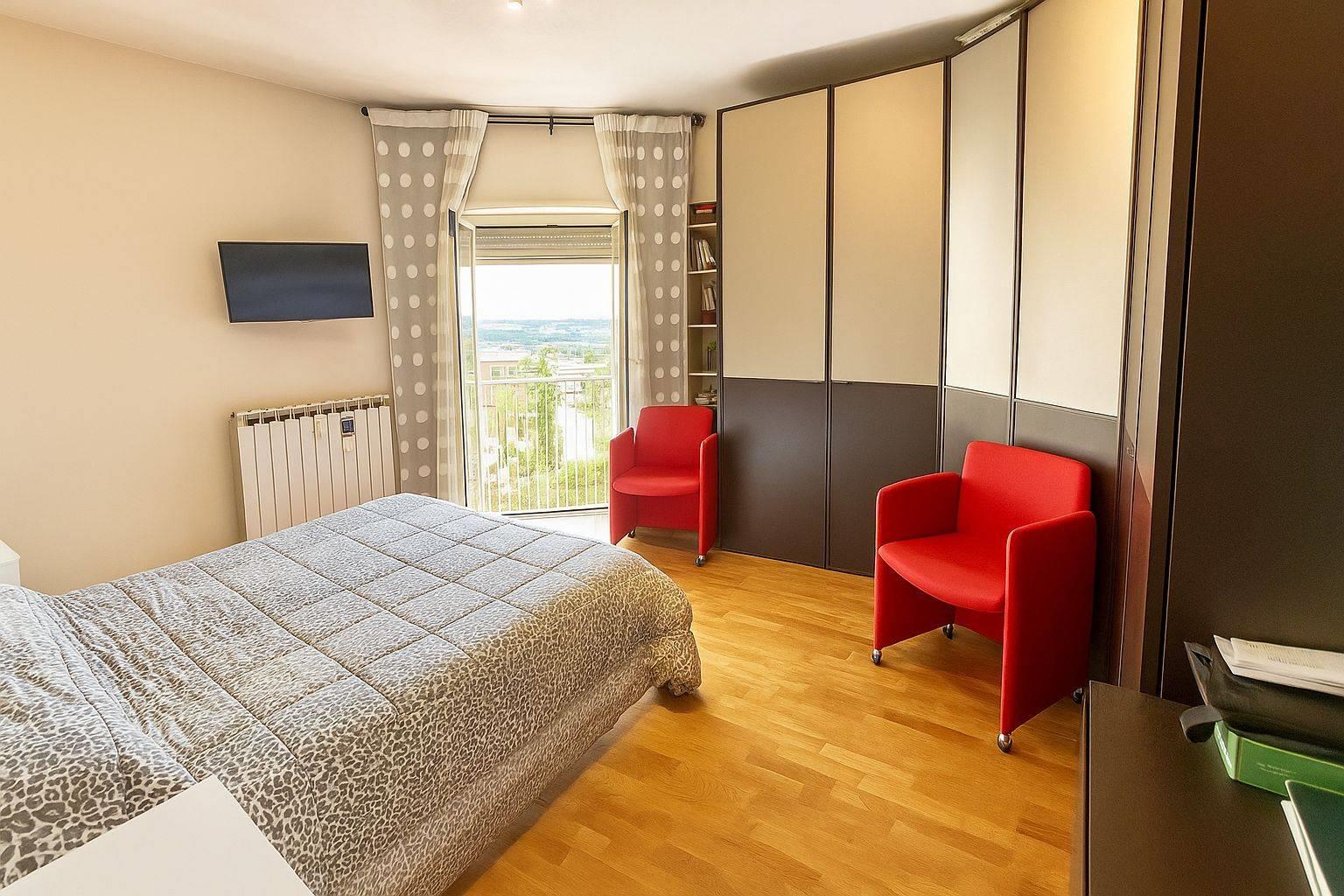* Camera da letto matrimoniale:Generosa nelle dimensioni, silenziosa e ben illuminata, rappresenta un'oasi di tranquillità.