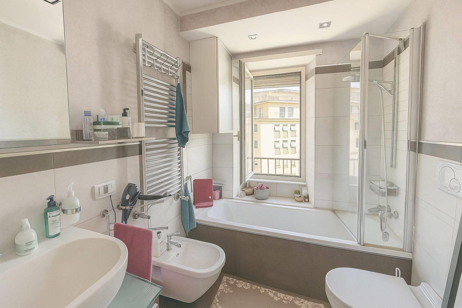 * Doppi servizi:L’appartamento dispone di due bagni,uno dotato di doccia e l’altro con vasca, pensati per offrire massima praticità.