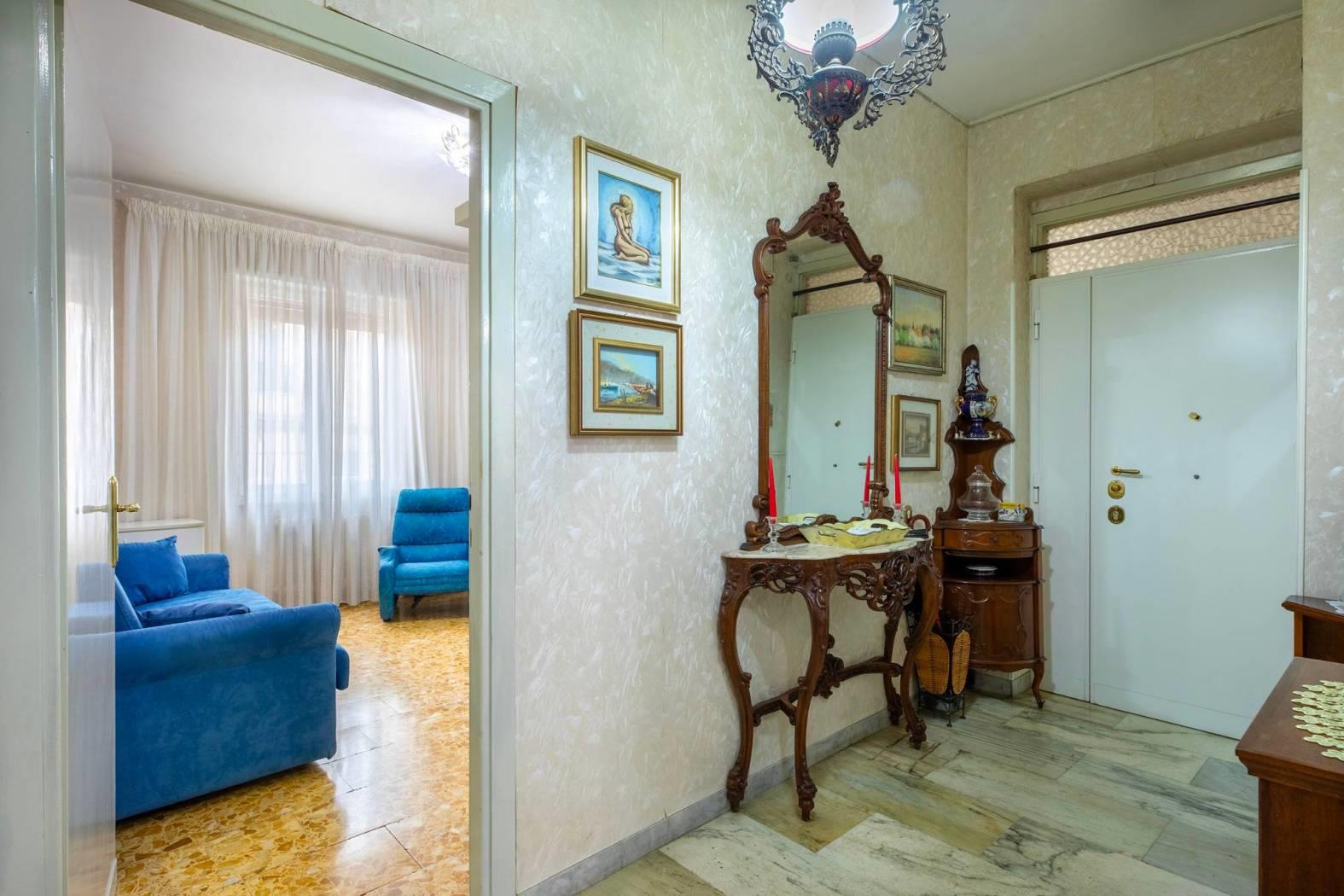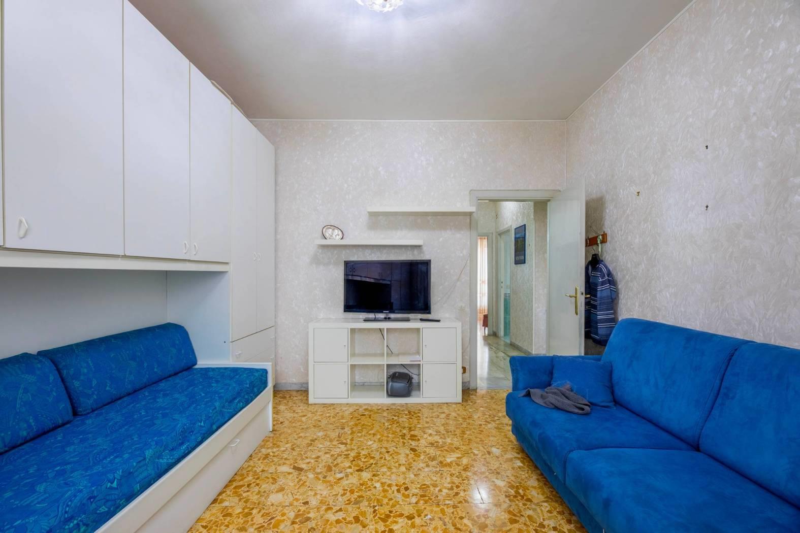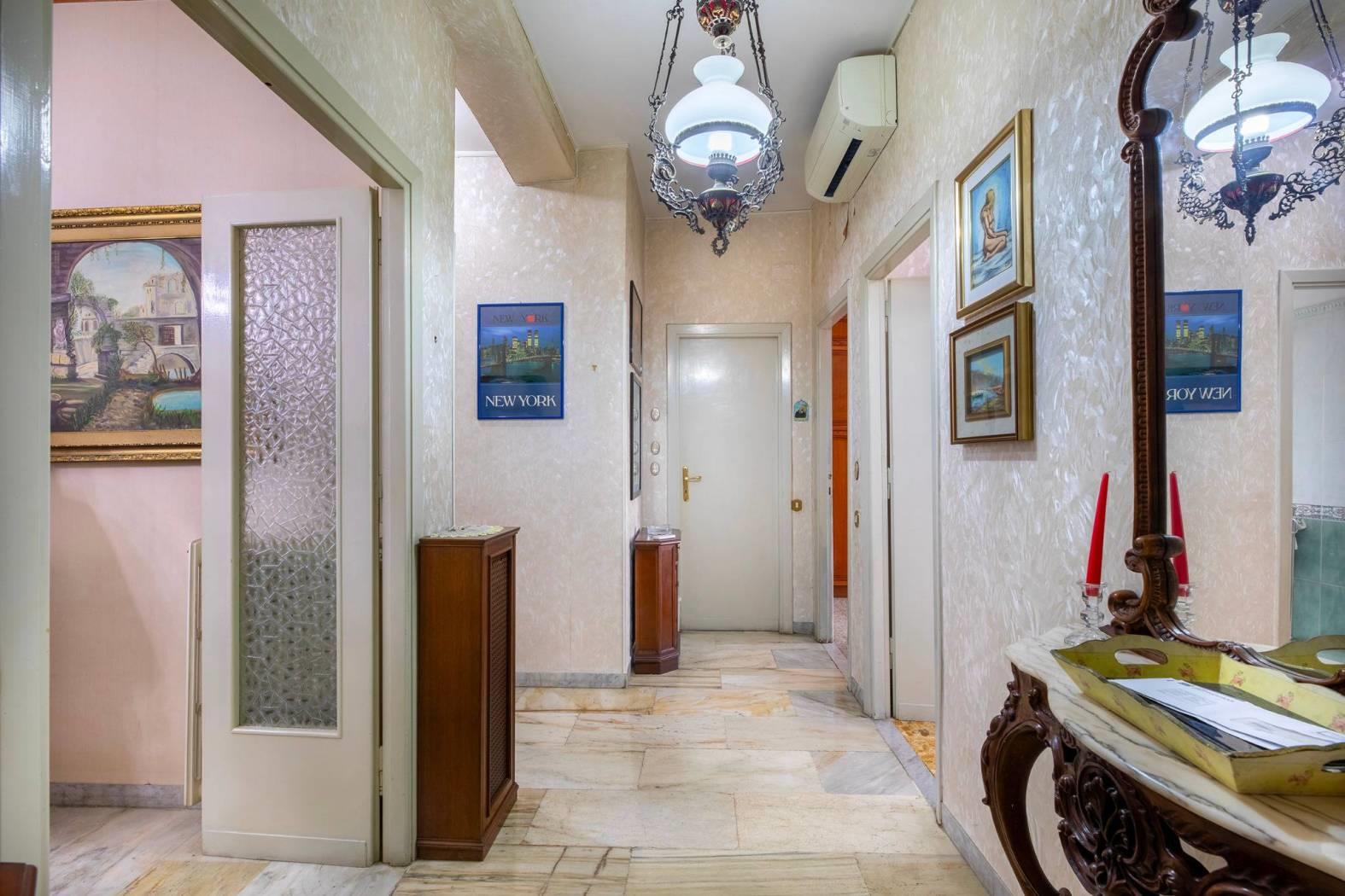 La distribuzione interna degli spazi è ottimamente divisa tra zona giorno e zona notte con ambienti spaziosi, accoglienti e ben razionalizzati e si compone di ampio ingresso, soggiorno con accesso diretto al balcone, 2 ampie camere da letto con uscita al balcone, una spaziosa cucina abitabile di 11 mq, bagno con finestra e una terrazza di mq 70 di proprietà e utilizzo esclusivo al 4° piano che rappresenta un vero valore aggiunto per chi ama vivere anche gli spazi esterni.