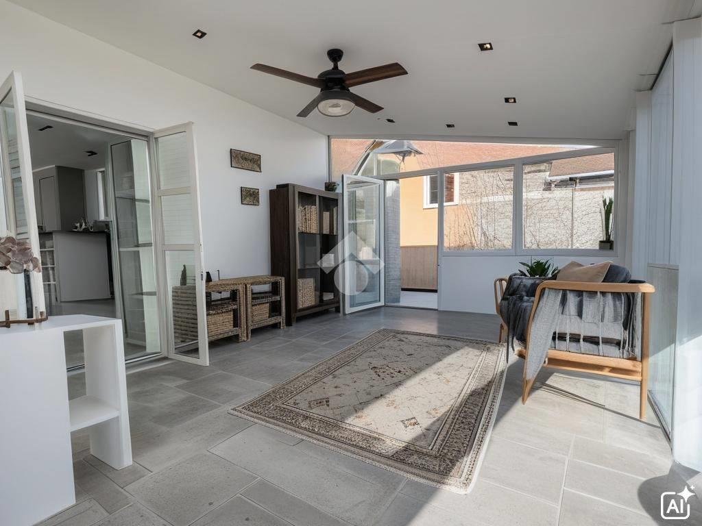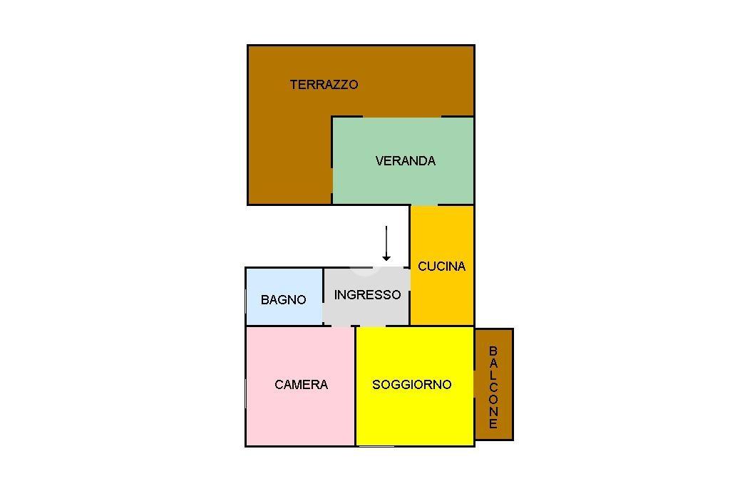La proprietà è composta da Ingresso, una camera da letto, cucina abitabile, veranda con uscita diretta sul terrazzo, soggiorno, balcone e bagno. Il piano alto e la quadrupla esposizione rendono l'appartamento molto luminoso per tutto l'arco della giornata.