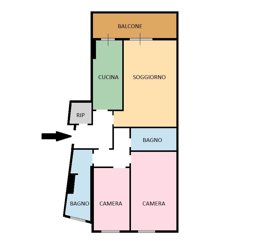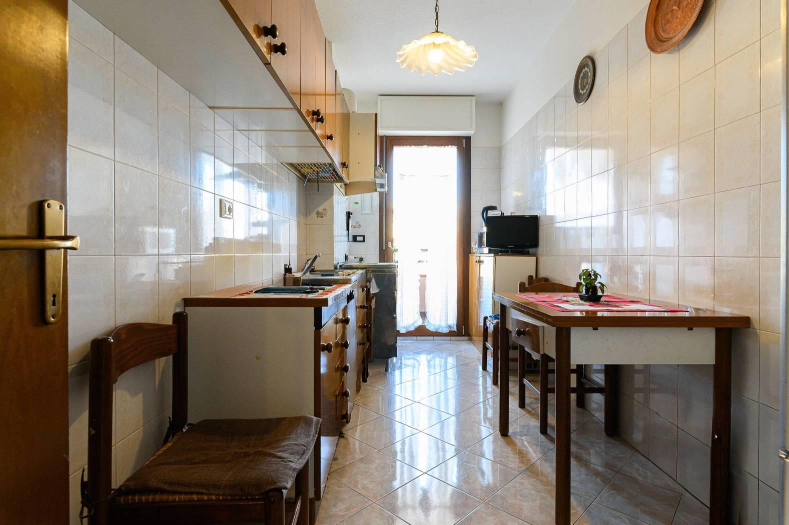 La zona giorno è composta da un accogliente soggiorno e da una cucina abitabile e separata, mentre la zona notte comprende una camera matrimoniale, una cameretta, doppi servizi e un comodo ripostiglio, ideale per ottimizzare gli spazi.