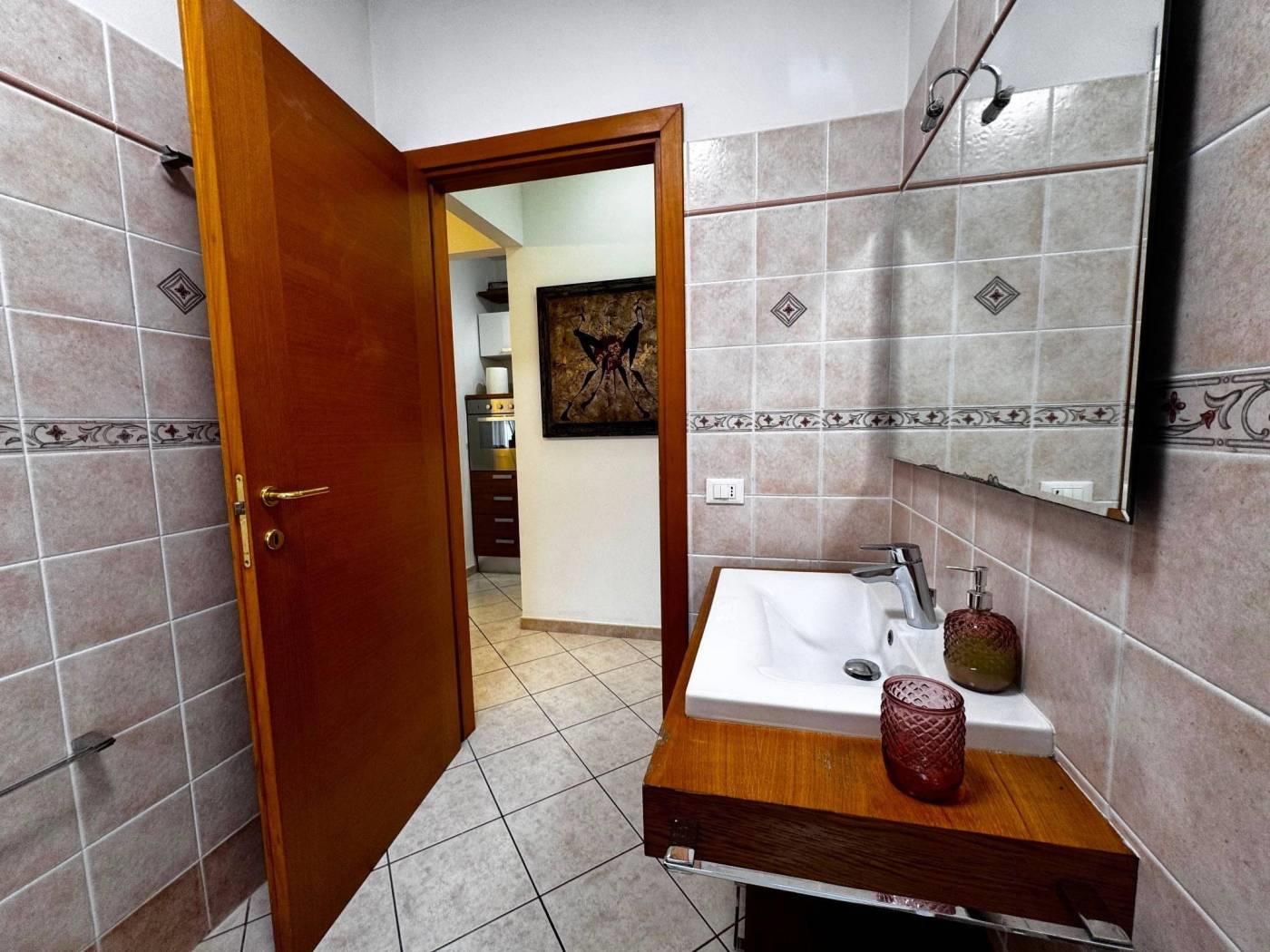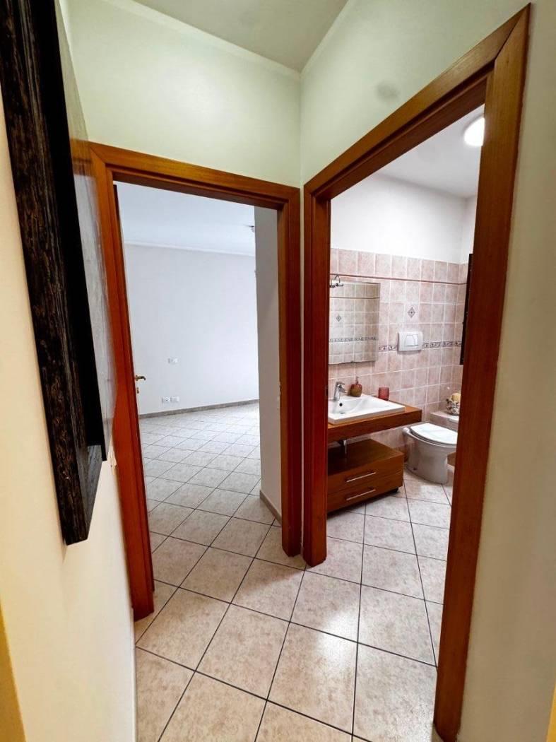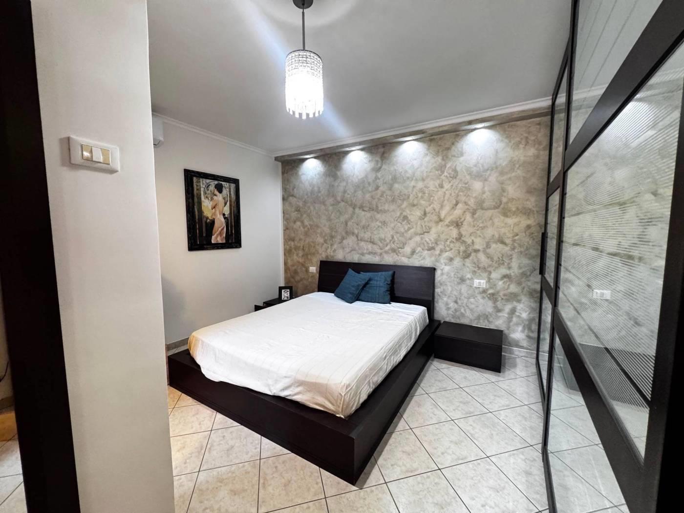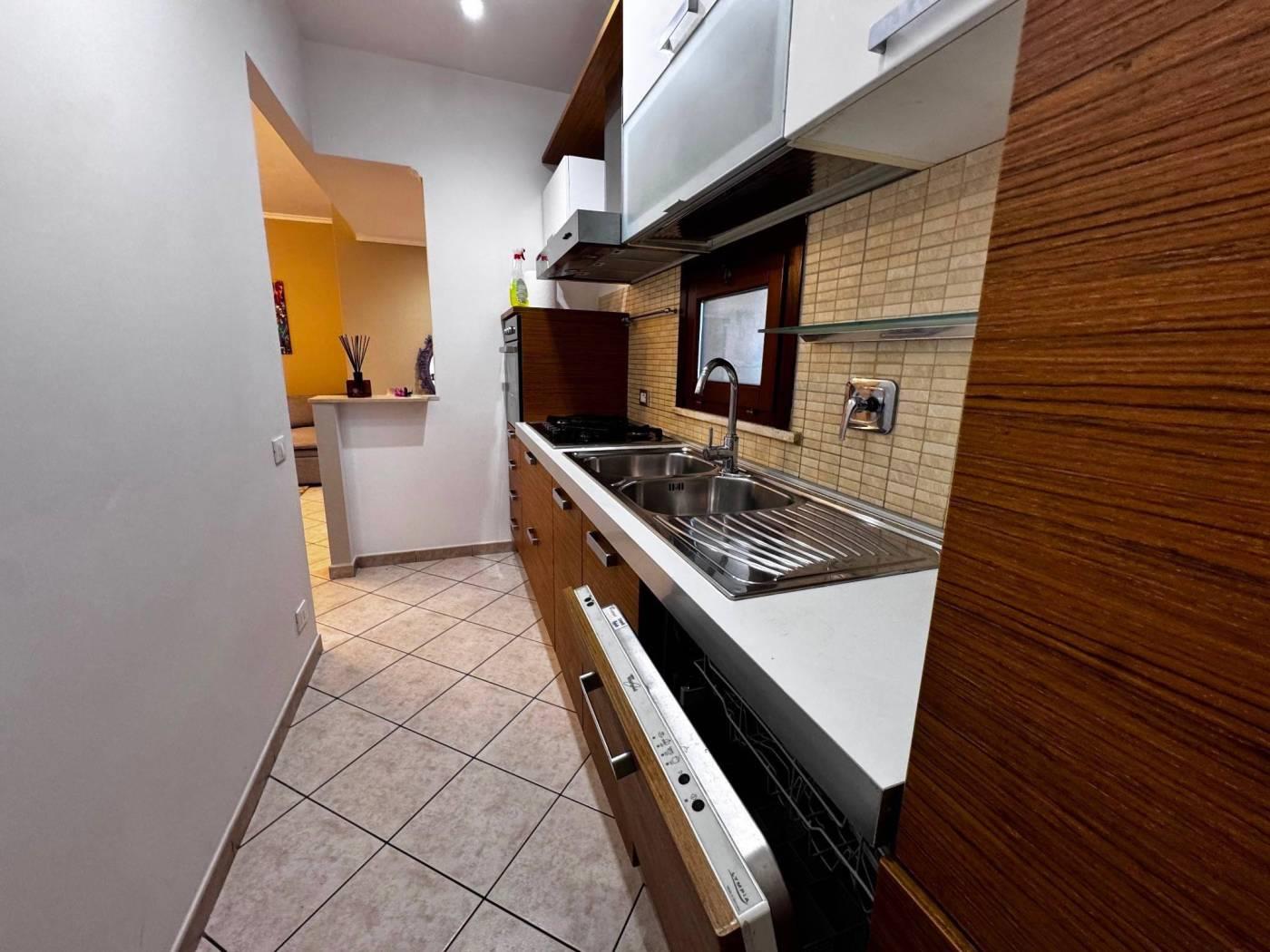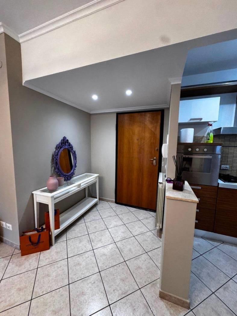 Gli spazi interni sono ben distribuiti, un ingresso con elegante controsoffitto e faretti illuminanti, un comodo soggiorno con cucinotto a vista, due camere da letto, di cui una con bagno privato e un secondo bagno finestrato e con vasca.