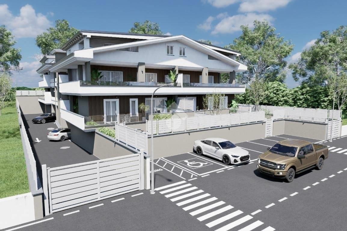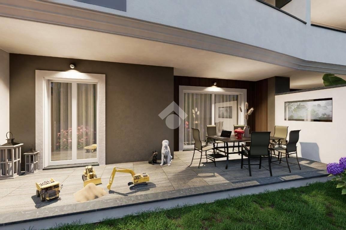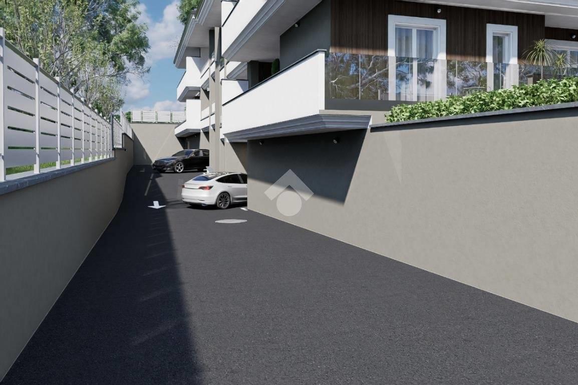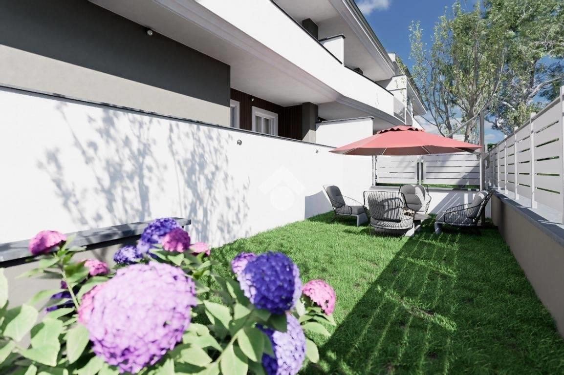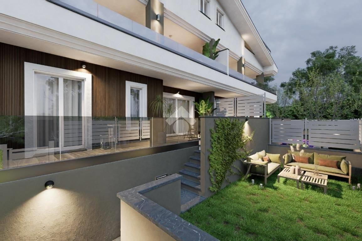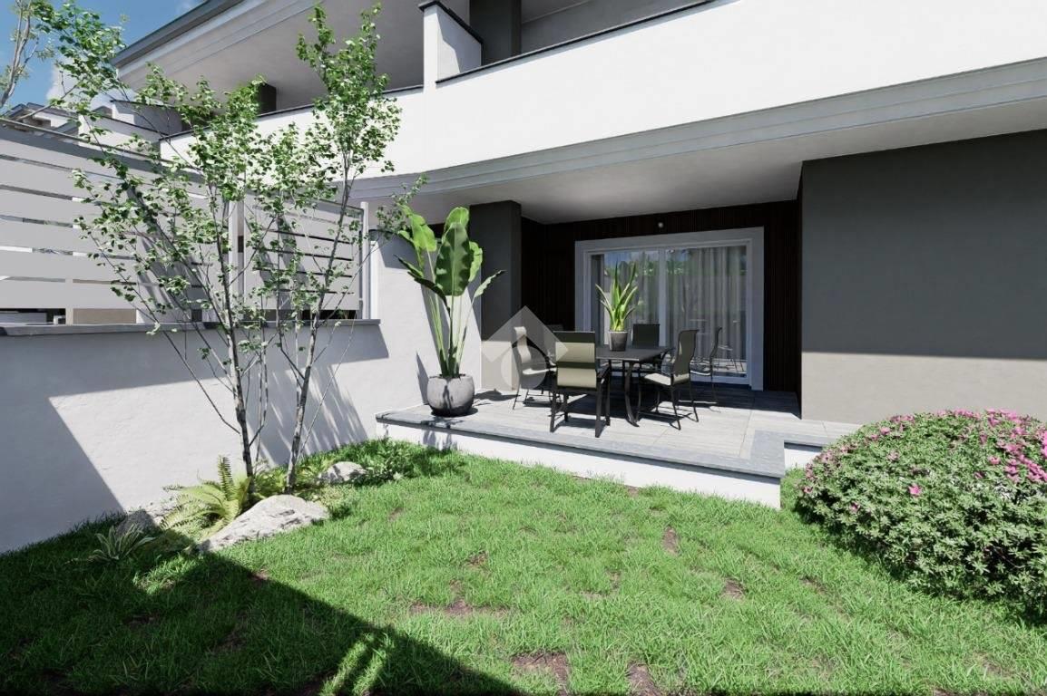 La soluzione trilocale, presenta una metratura interna di circa 80 mq ed è composta da soggiorno con angolo cottura, dove è possibile, grazie alla presenza di un'ampia porta finestra, accedere direttamente all'esterno, dove ad accoglierci troviamo una pertinenza verde e pavimentata. In questo modo, non solo potrete godere e beneficiare di momenti trascorsi all'aria aperta nel giardino di Casa, ma avrete in ogni momento della giornata luce diretta e luminosità costante. L'appartamento presenta poi, una comoda camera matrimoniale con porta finestra, creata per garantire luce all'intero ambiente ed un'altra camera ad ultimare la zona notte. Naturalmente l'appartamento dispone di un pratico bagno anch'esso finestrato, che assicura comfort e funzionalità all'intera abitazione.