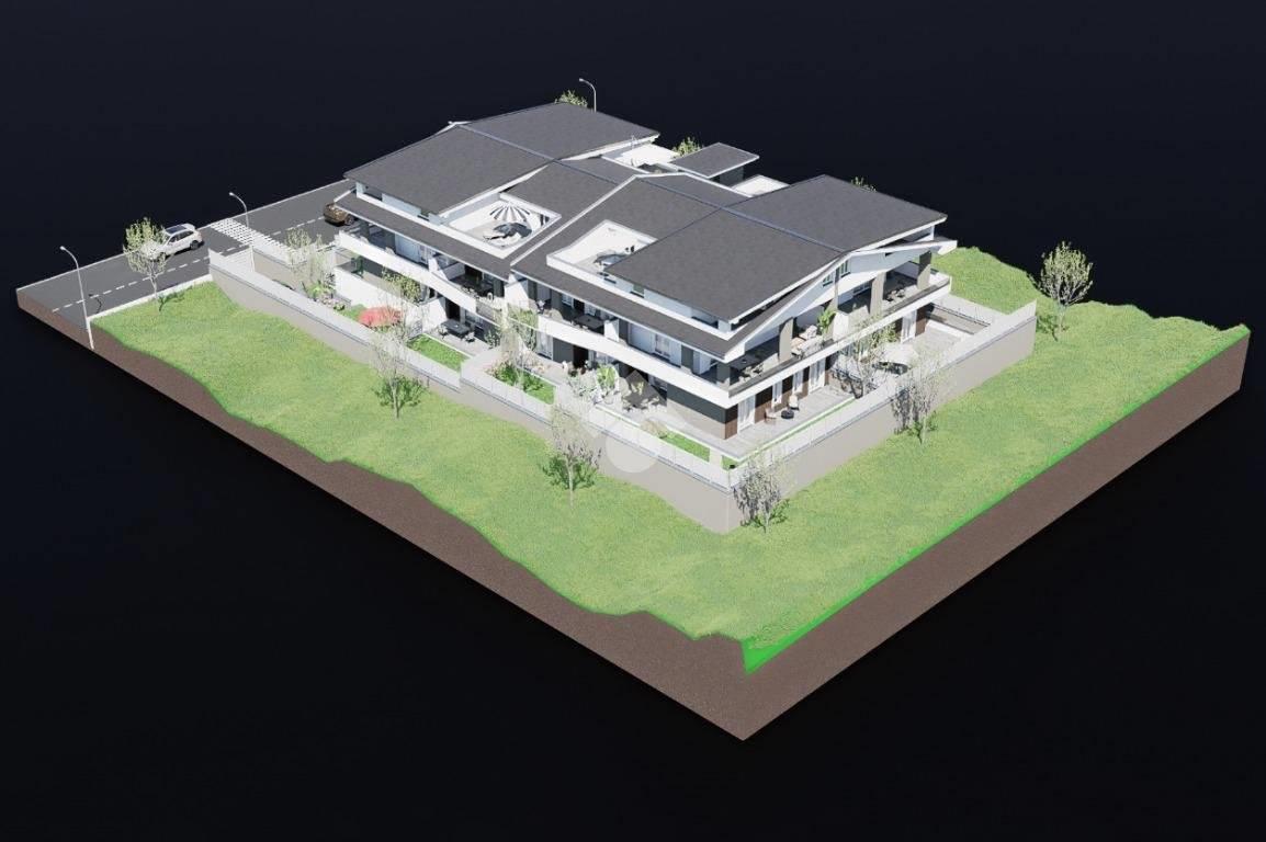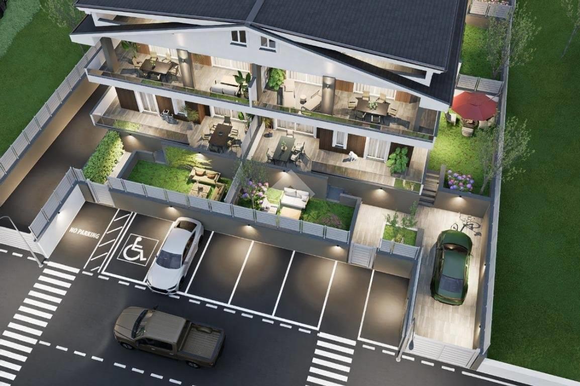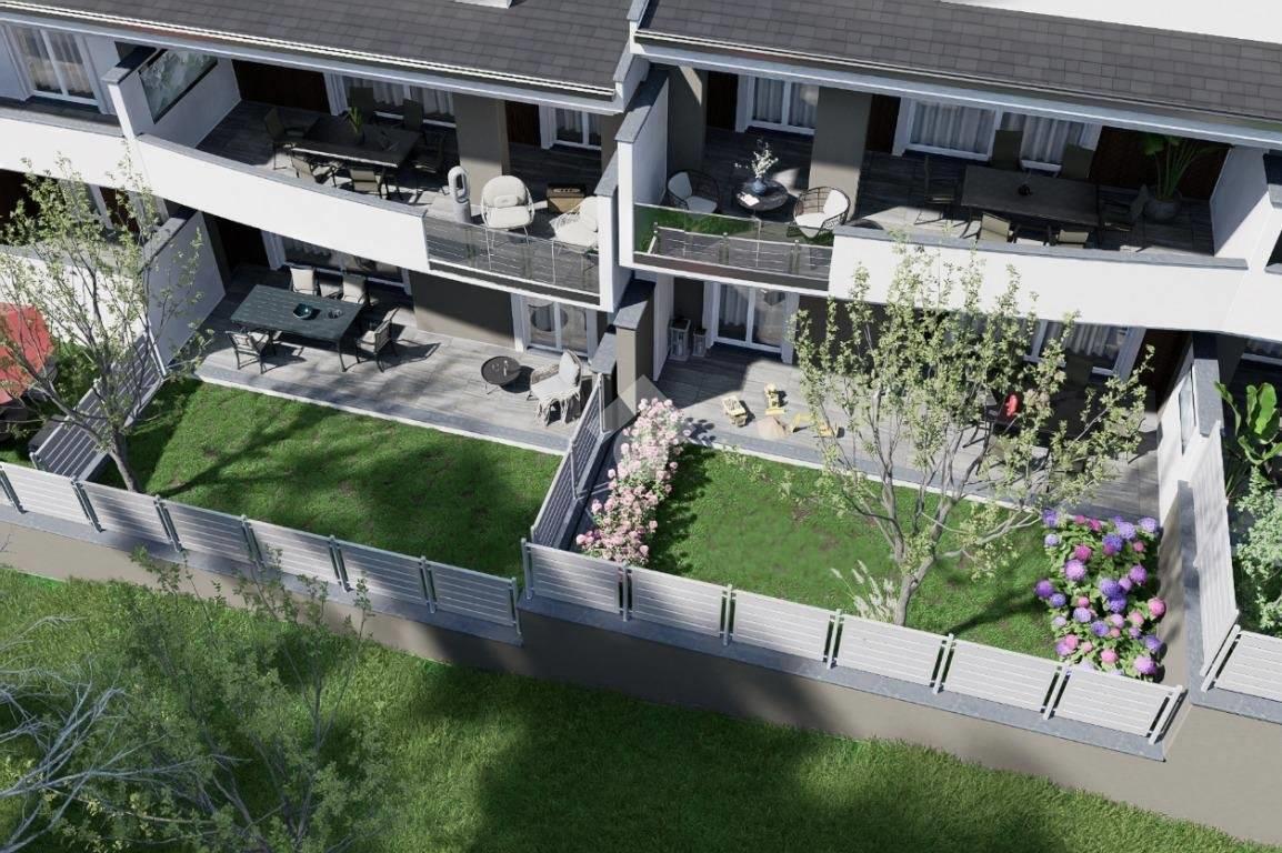Al piano terra troviamo appartamenti trilocali e quadrilocali, realizzati su di un unico livello e tutti rigorosamente con giardino e terrazzo.