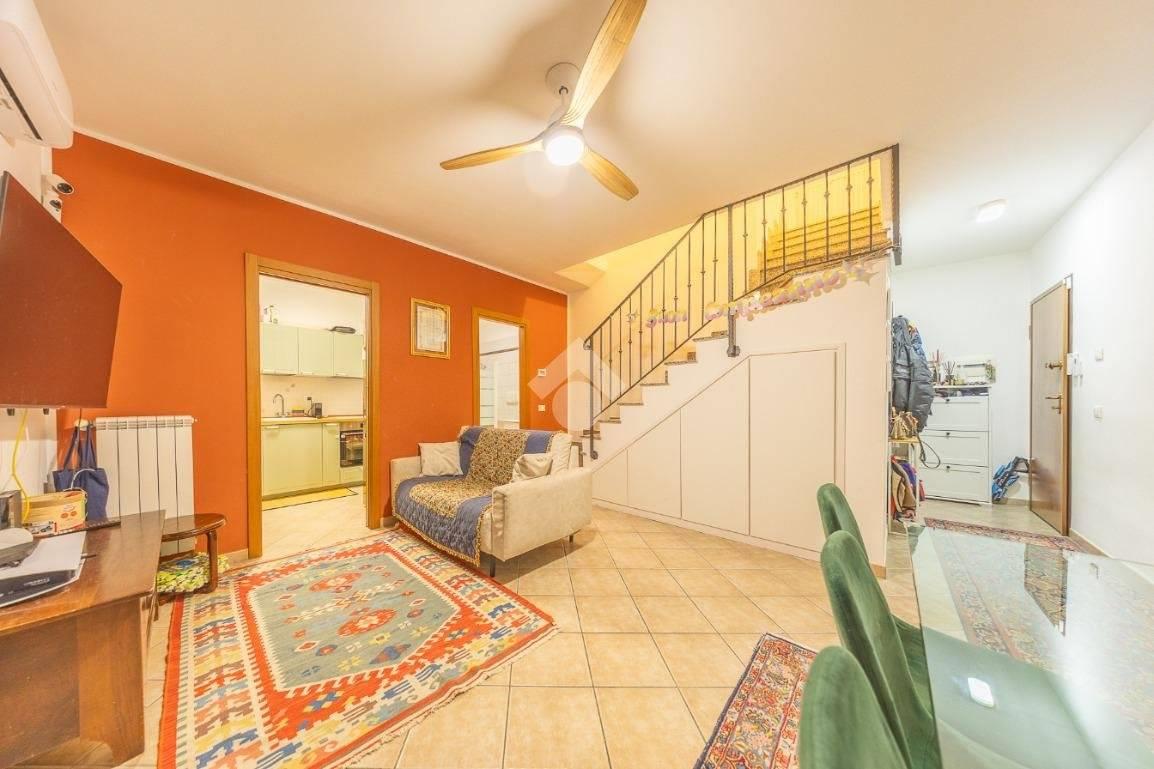 Ingrandiamo ancora con la nostra lente immaginaria e siamo proprio in casa, tenuta ottimamente come da foto, siamo al terzo piano con un ampio sfogo esterno, estremamente luminoso, disposta su due livelli e cosi composta: nel piano basso troviamo salone, cucina separata, bagno e balcone perimetrale, al piano superiore due camere da letto ed un ulteriore bagno.