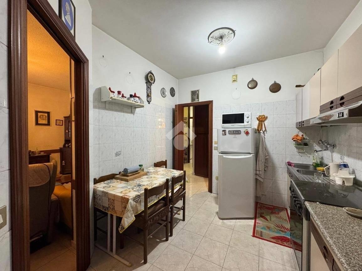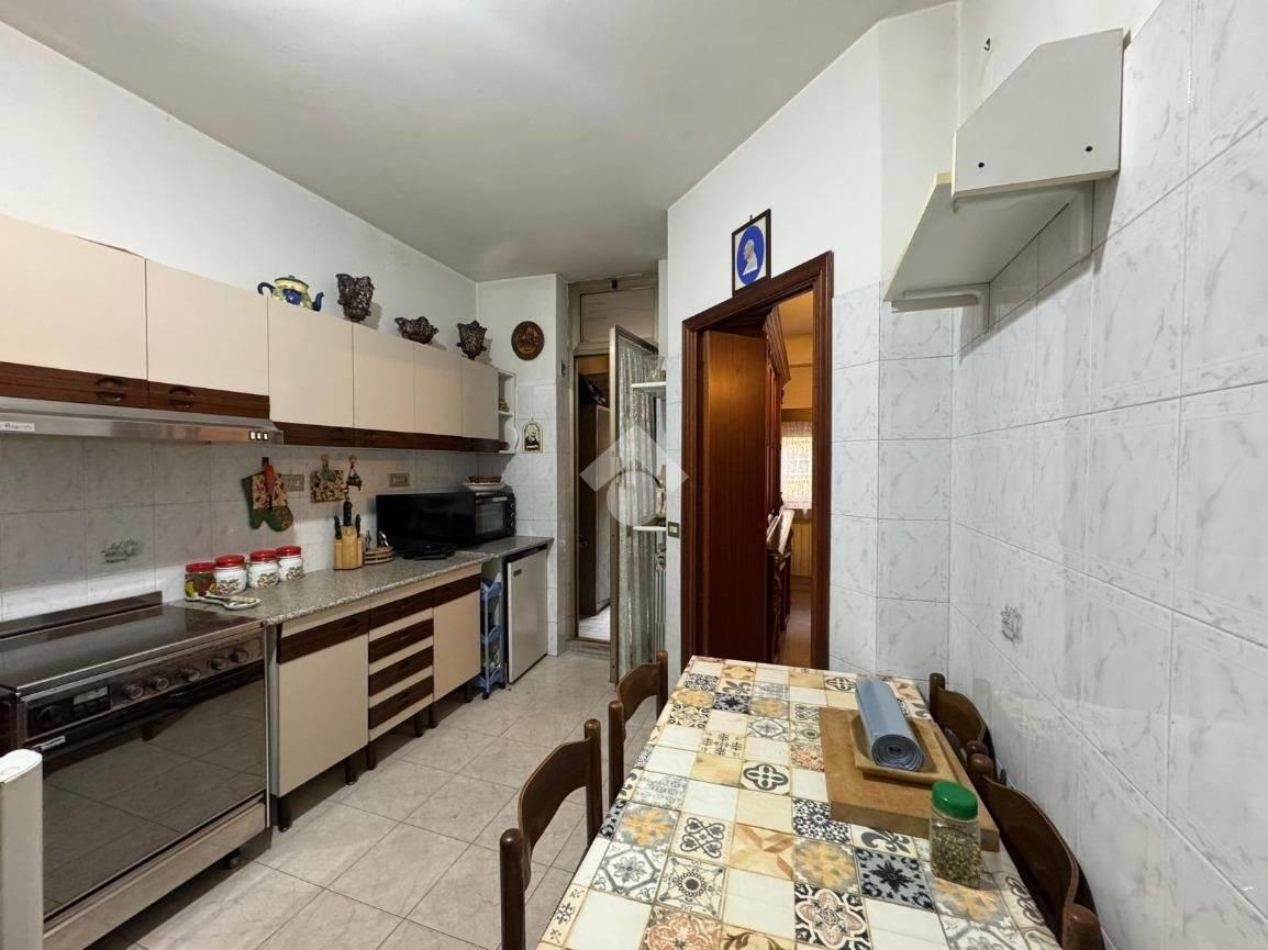 La cucina abitabile, di ottima metratura, è dotata di doppio ingresso, sia dal corridoio sia direttamente dal soggiorno, caratteristica che rende gli ambienti comunicanti ma al tempo stesso facilmente rimodulabili in fase di ristrutturazione. Dalla cucina si accede al secondo balcone, che garantisce ulteriore luminosità e aerazione naturale.