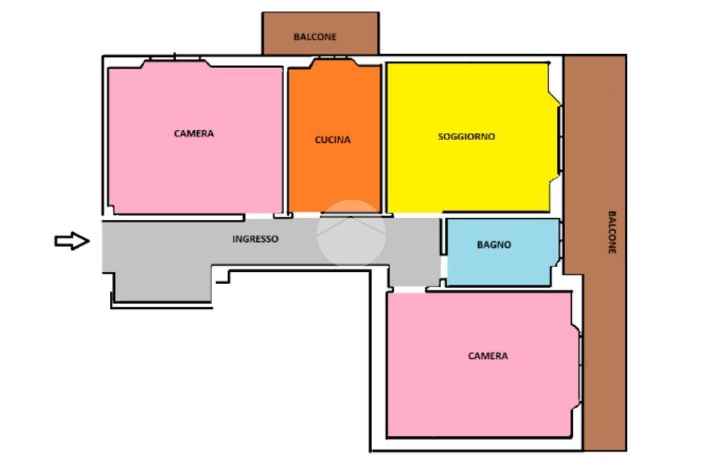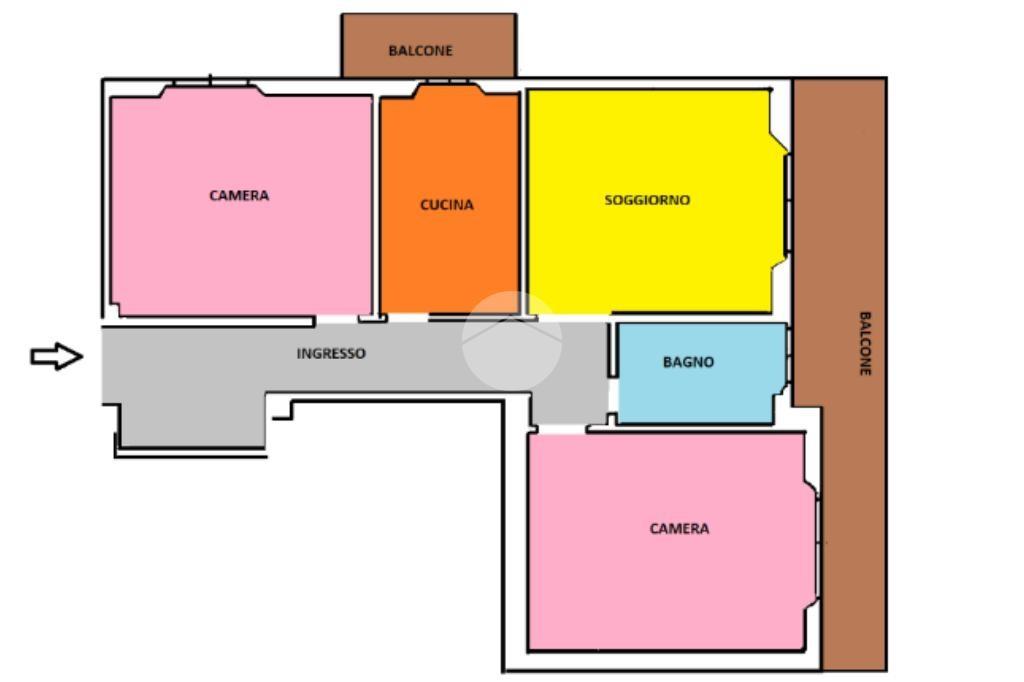 L'appartamento è così composto:ingresso, soggiorno, cucina abitabile con uscita sul primo balcone, due camere da letto matrimoniali entrambe con accesso al secondo balcone dell'immobile e bagno finestrato.