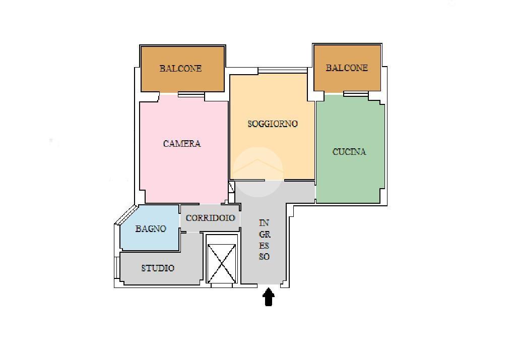 L'immobile internamente è composto da un ampio ingresso dotato di soppalco ed armadio a muro, regolare ed accogliente soggiorno, comoda cucina abitabile con finestra e portafinestra sul primo spazio esterno, grande e confortevole camera da letto matrimoniale con uscita sul secondo spazio esterno, bagno completo e finestrato ed, infine, un utile studio, facilmente convertibile come secondo bagno.