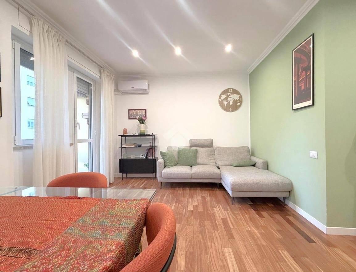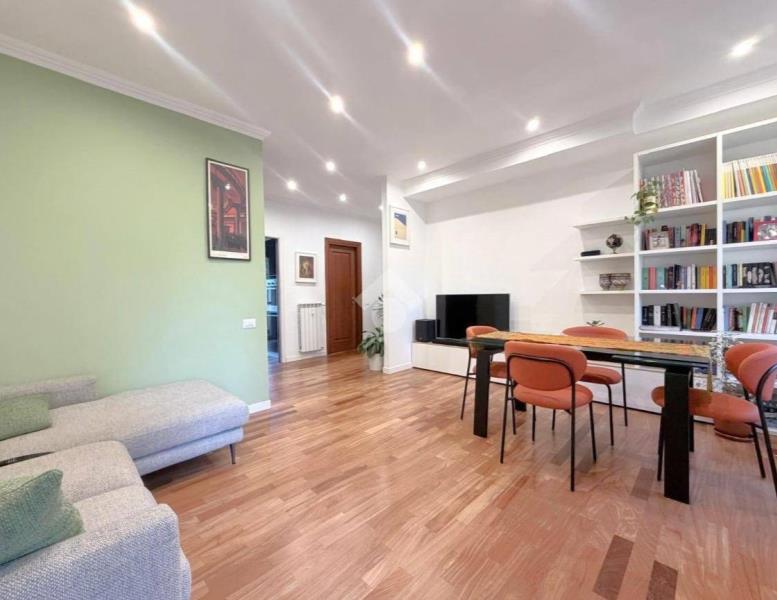 L’appartamento si apre su un soggiorno ampio e luminoso, vero fulcro della casa, con accesso diretto a un balcone abitabile, ideale per pranzi e cene all’aperto o momenti di relax. La doppia esposizione garantisce luminosità e ariosità agli ambienti durante tutto l’arco della giornata.