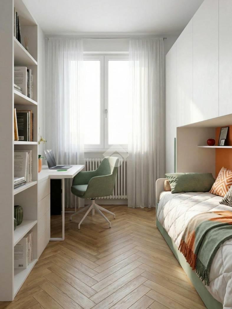 La zona notte sarà composta da camera da letto matrimoniale, seconda camera e bagno, rifinito con maioliche effetto cemento dallo stile moderno.