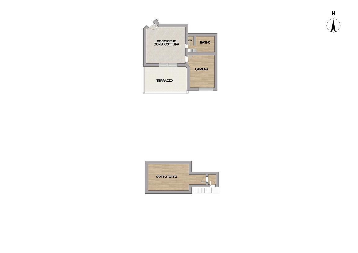 Al piano superiore è presente un sottotetto, uno spazio riservato e versatile, perfetto come zona notte aggiuntiva, studio o stanza per gli ospiti con cabina armadio. L'altezza massima è di 2.04 m e l'altezza minima è di 0.84 m