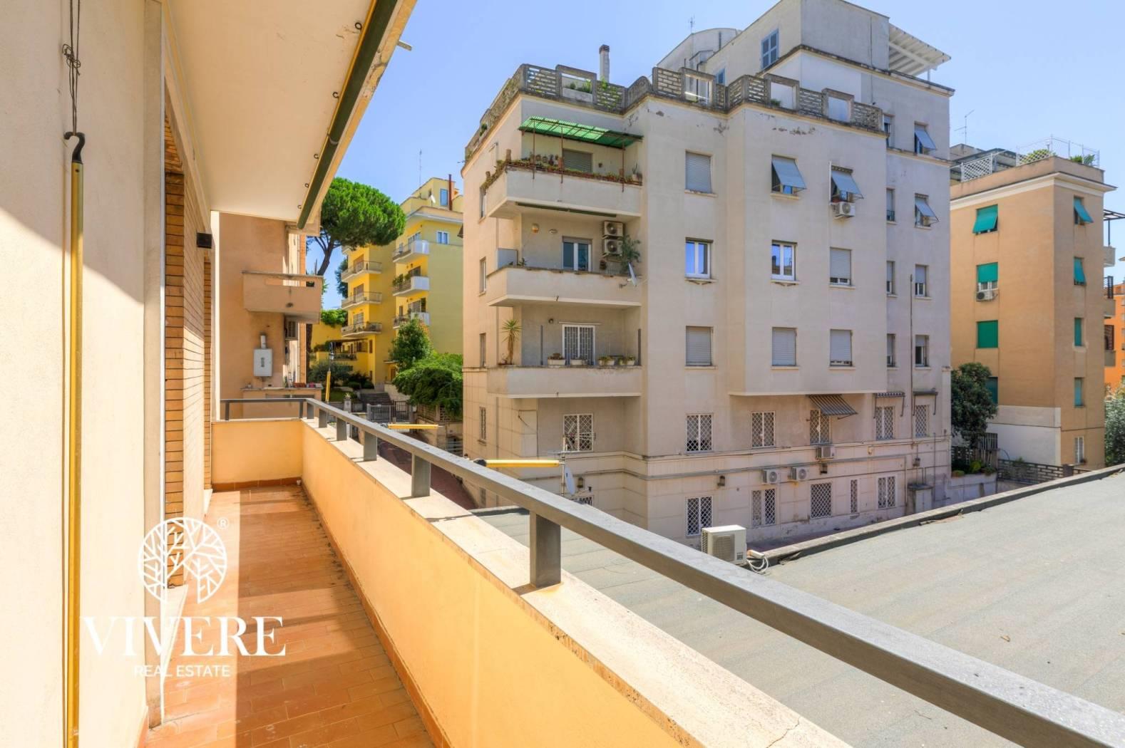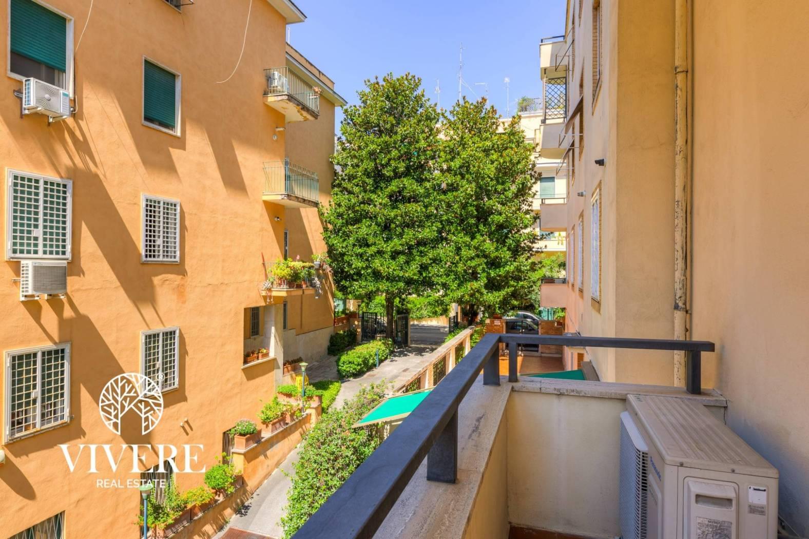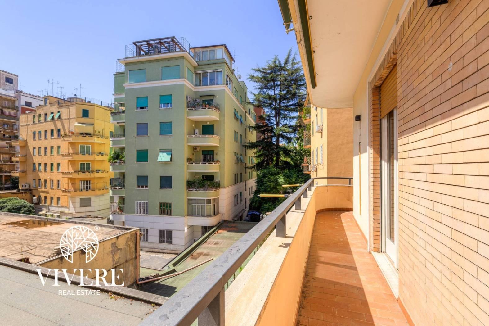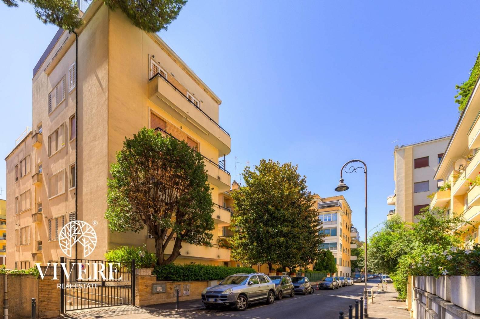 Vivere Real Estate propone in vendita, precisamente in Via di Trasone, una tranquilla strada a senso unico nel cuore del Quartiere Africano, un elegante appartamento al primo piano di una palazzina signorile di soli 4 piani, servita da ascensore e composta da 10 unità abitative.