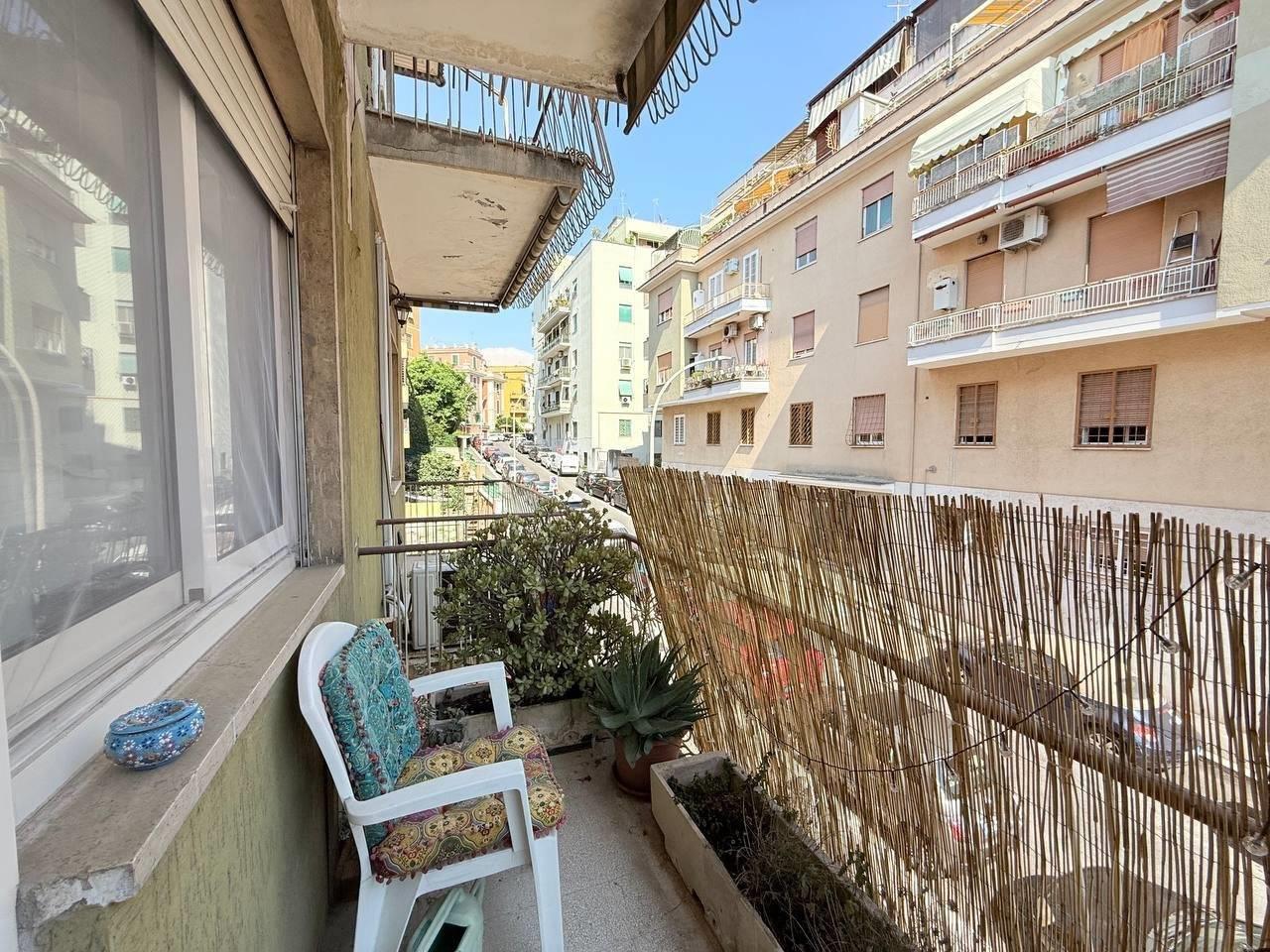 Each room has direct access to one of the balconies: the kitchen balcony faces the inner courtyard, while the two bedroom balconies overlook Via Francesco Datini — a central yet quiet and low-traffic street.