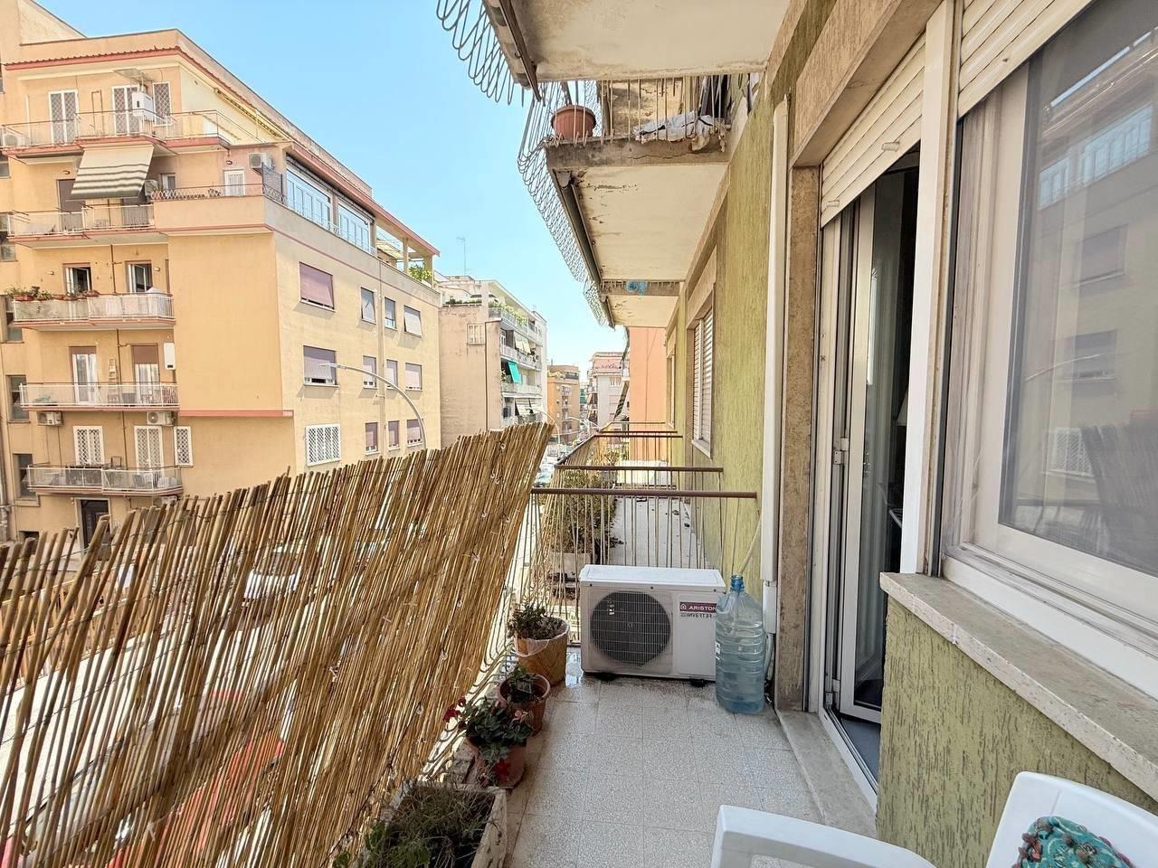 soggiorno con angolo cottura, due camere matrimoniali, bagno, ripostiglio e tre balconi.