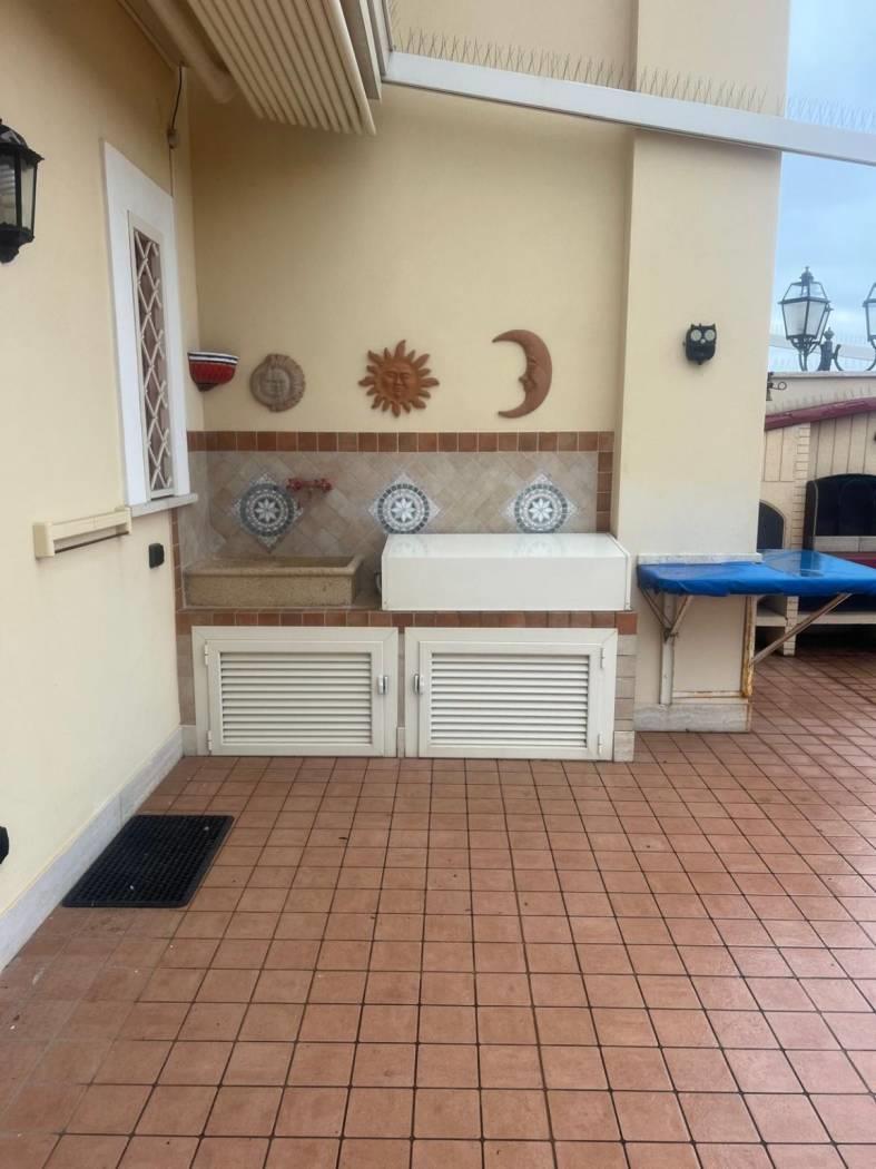 Che Case Agency propone in vendita a Santa Marinella in Via Michelangelo Buonarroti, un bellissimo attico e superattico posizionato a 80 mt dal mare con splendida vista panoramica. L'immobile è ubicato in una palazzina di recente costruzione, è completamente ristrutturato ed è composto da ingresso, cucina abitabile, due camere, due bagni, ripostiglio, un terrazzo perimetrale dotato di cucina esterna in muratura e pergotenda e due balconcini nel piano superiore. Completa la proprietà un comodo box auto. L'appartamento ha inoltre grate in tutte le finestre, infissi in legno doppio vetro, porta blindata, climatizzatori e impianto d'allarme ed è vicino a tutti i servizi principali.