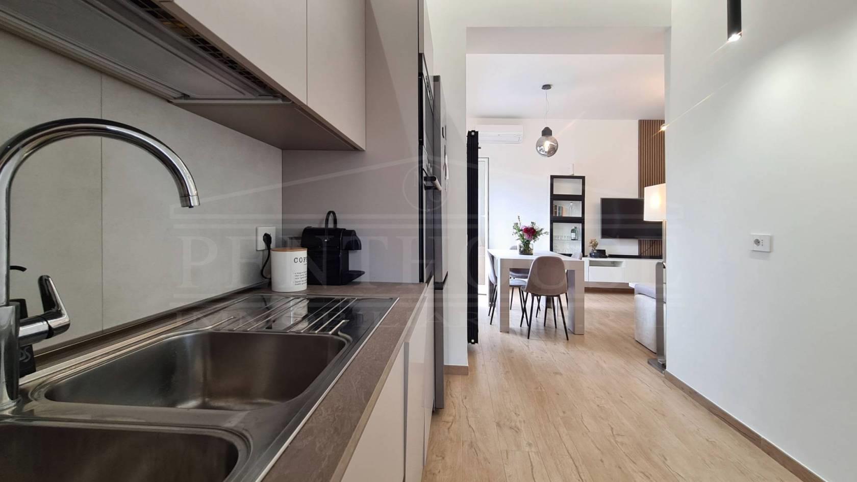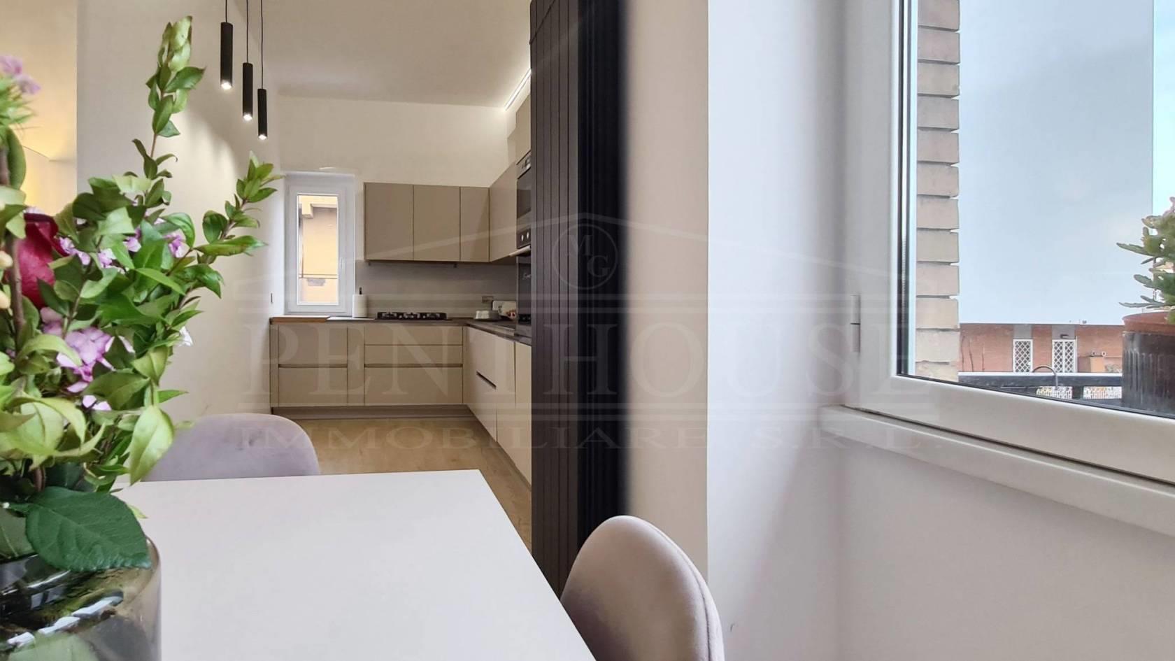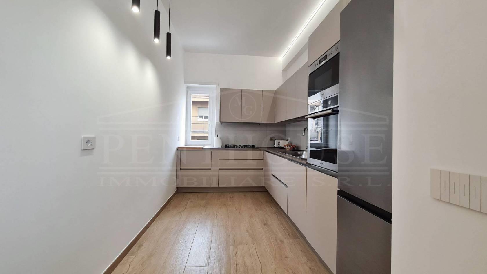 L’immobile, recentemente ristrutturato su progetto di architetto, si presenta in condizioni impeccabili ed è rifinito con materiali di qualità. L’ingresso si apre su una luminosa zona living con accesso al balcone. La cucina brand “Stosa”, completa di elettrodomestici (piano cottura a gas, lavastoviglie, forno, microonde, frigorifero con freezer), è perfettamente integrata negli spazi. Un comodo disimpegno ospita il vano lavanderia con lavatrice/asciugatrice.