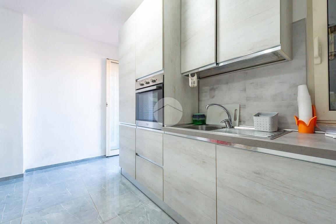 All’interno l’appartamento si apre su un luminoso soggiorno con cucinotto a vista, ambiente accogliente e funzionale.