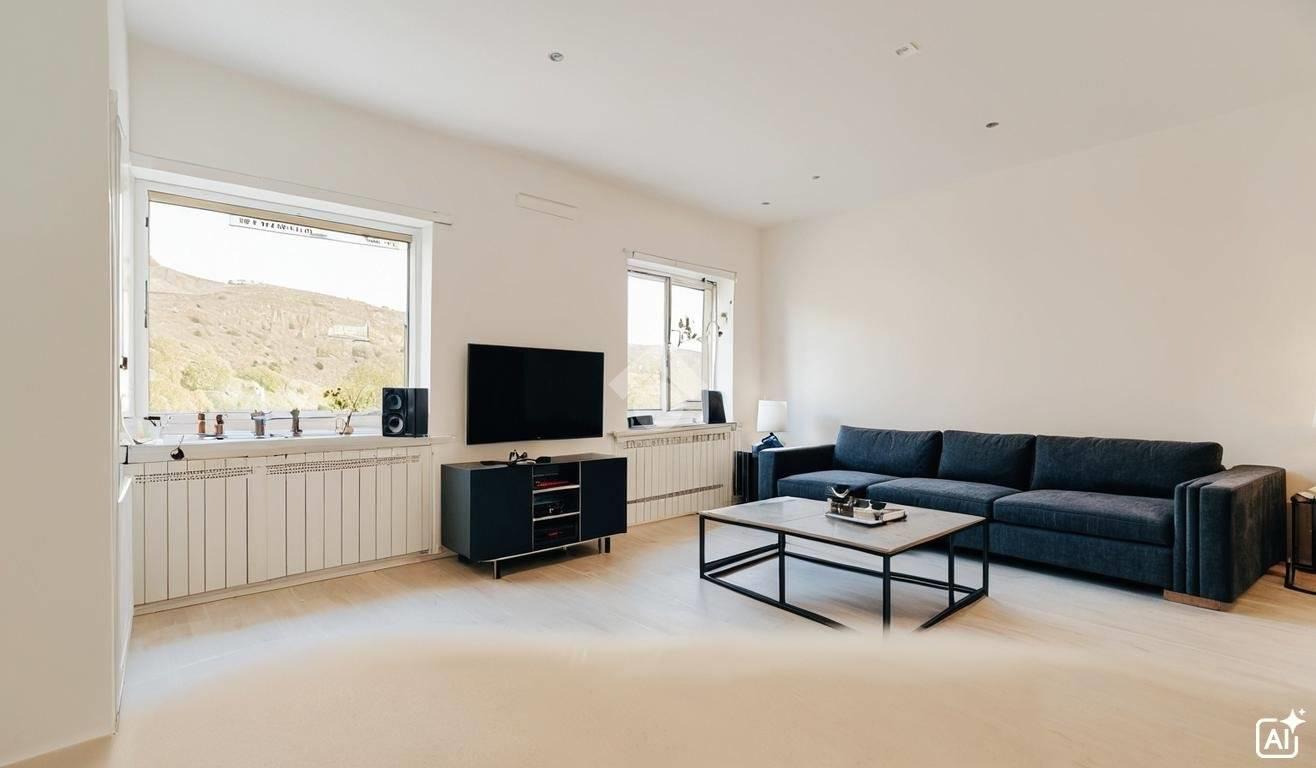 L’ingresso si apre su un accogliente salone con cucina a vista, pensato per offrire uno spazio conviviale, ideale per rilassarsi o ricevere ospiti.