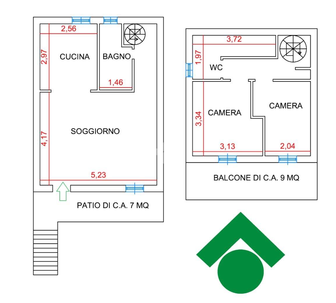 Secondo piano: composta da due camere da letto, un bagno finestrato con vasca e ulteriore balcone anch’esso vista mare.