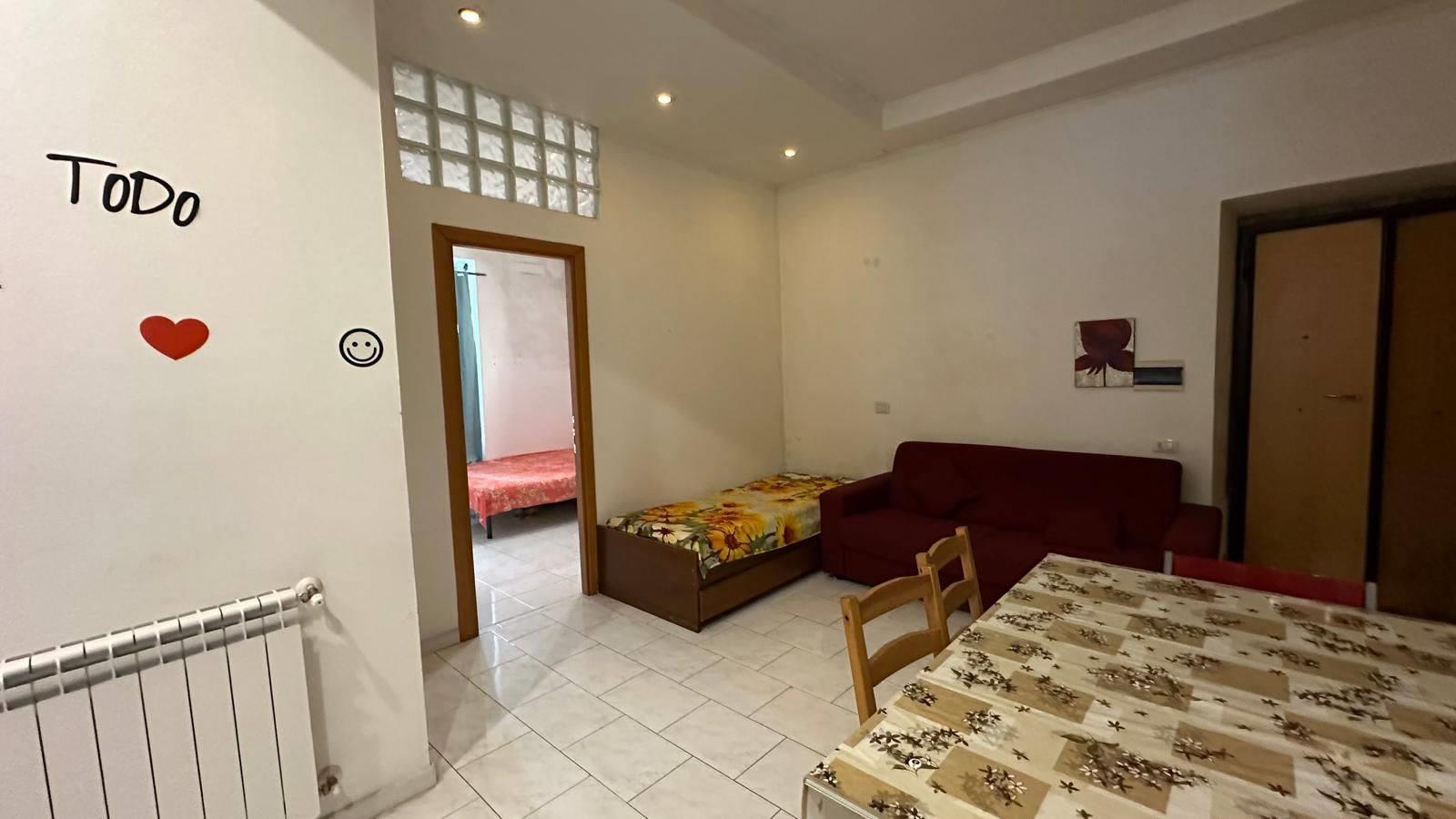 Via dei Meli in palazzina in tinta anni 60, appartamento affittato al canone annuo di Euro 9.000,00 con scadenza contratto luglio 2028, composto da soggiorno, camera, cameretta, cucina abitabile e bagno.