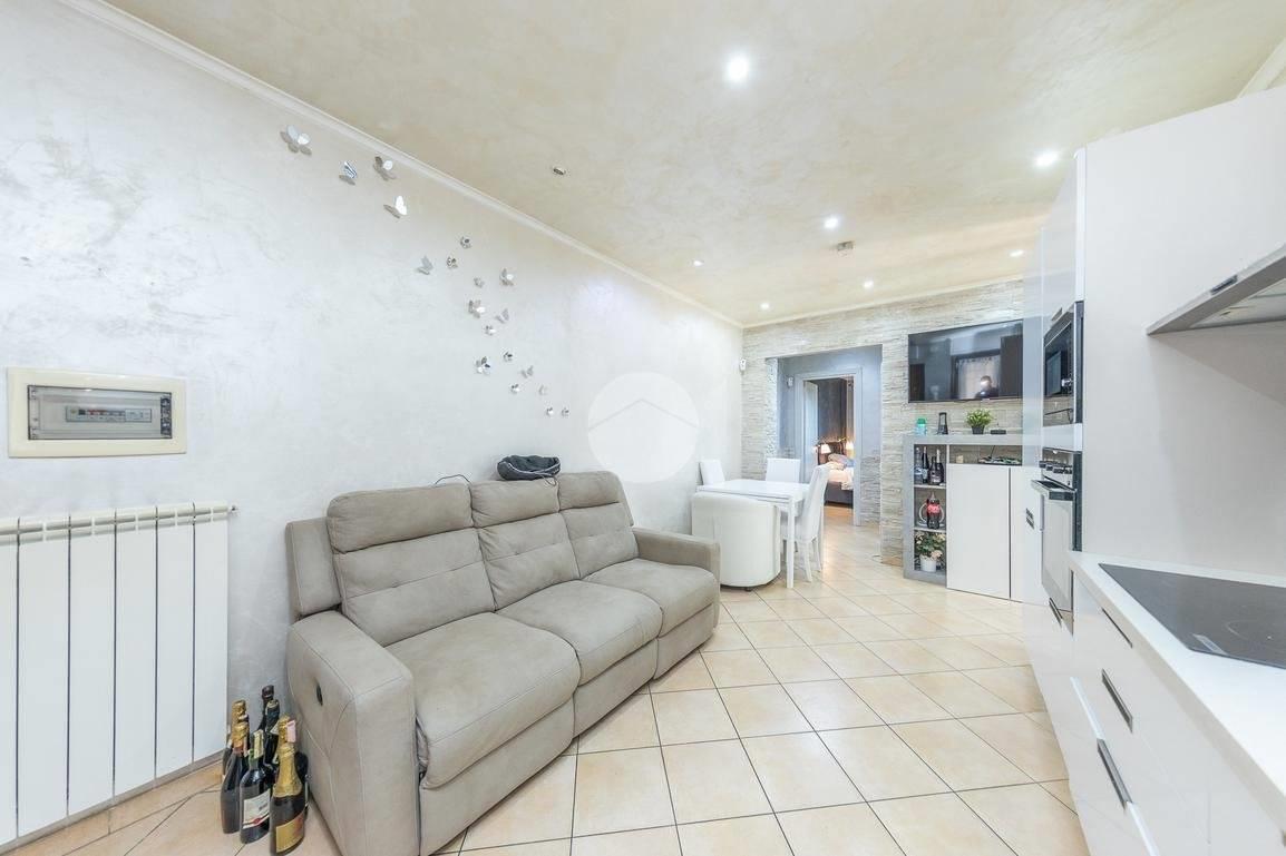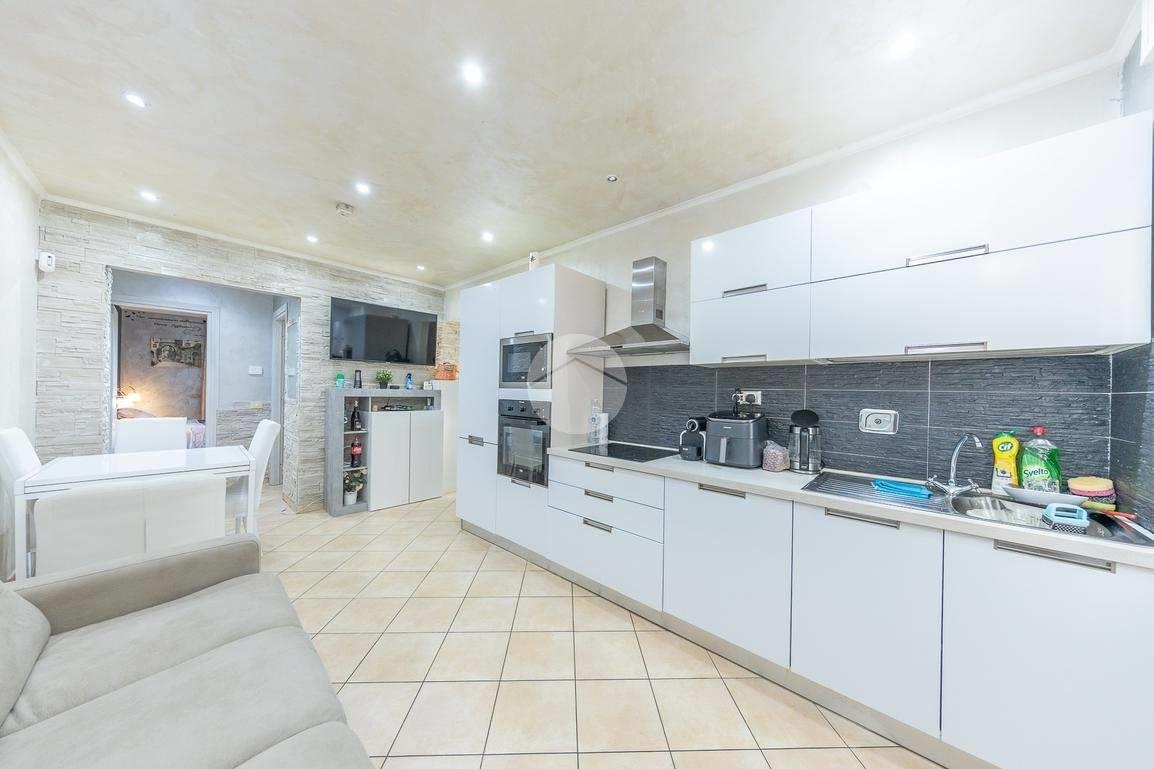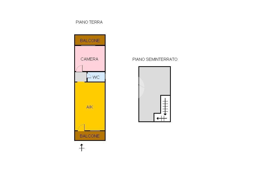 L'appartamento al piano terra accoglie un salone luminoso con angolo cottura, perfetto per momenti di convivialità. La zona notte è composta da una camera matrimoniale, un bagno finestrato con vasca, per un tocco di relax in completa privacy.