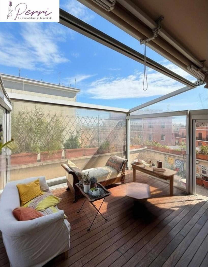 Proponiamo in vendita un attico, posto al terzo piano, di una palazzina senza ascensore, con terrazzo abitabile di circa 42 mq di cui 12 dotati di pergotenda con affaccio non diretto sulla Circonvallazione Gianicolense.