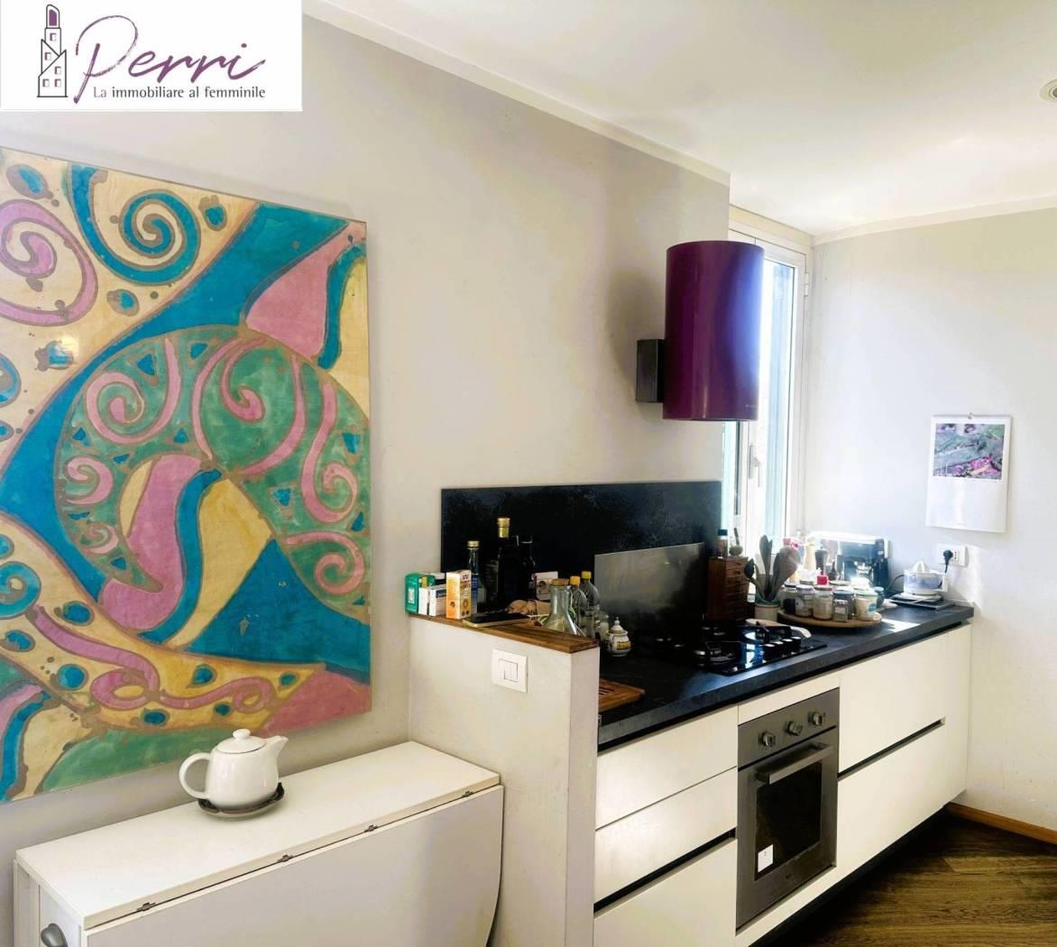 L’immobile è composto da soggiorno con cucinotto separato, due camere da letto, di cui una con ampia cabina armadio e bagno interno, oltre a un secondo servizio.