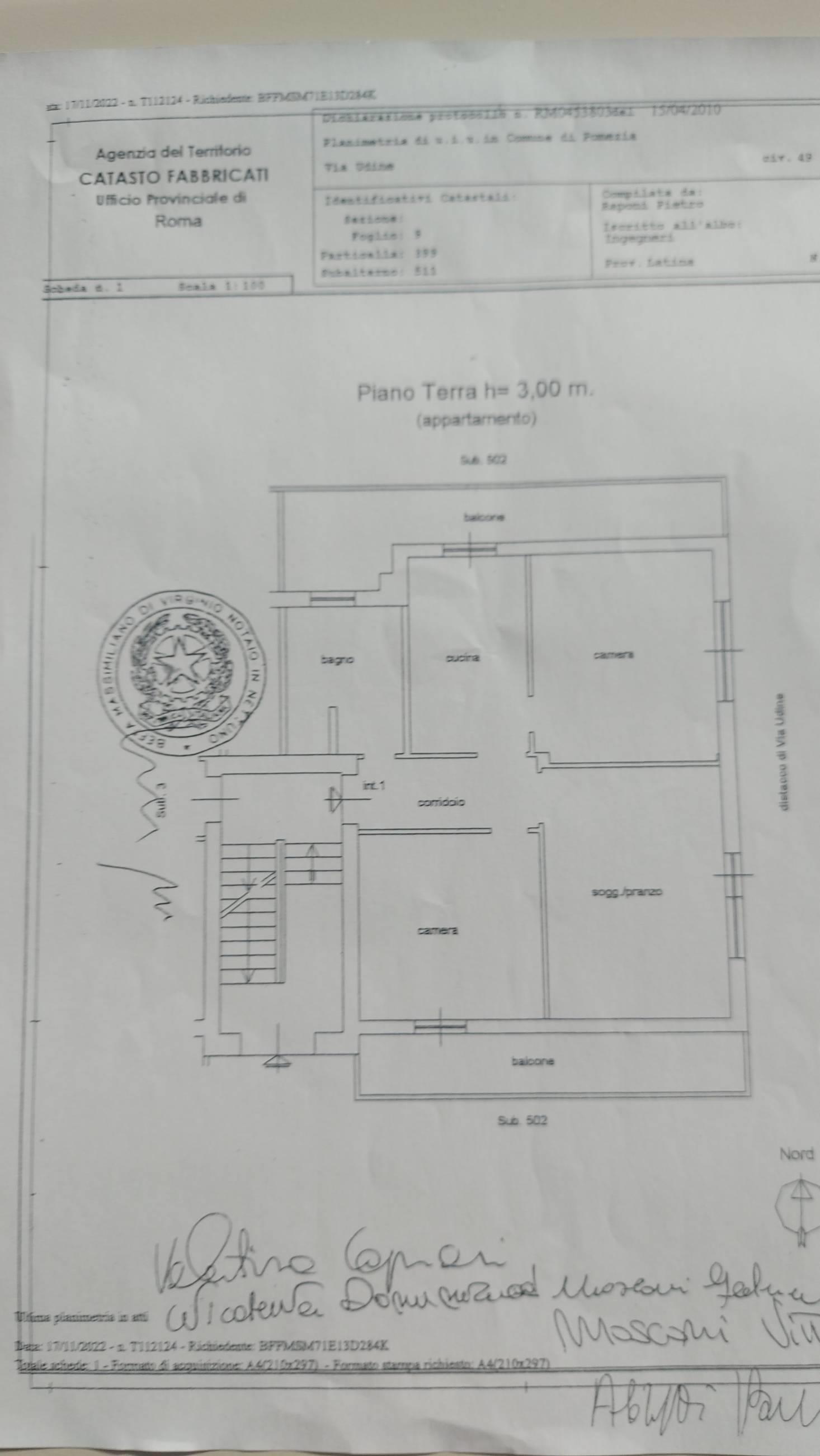 Pomezia - via Udine. In zona a forte sviluppo commerciale e ottimamente collegata con Pomezia Centro e via Pontina , proponiamo in vendita in piccola palazzina , ampio appartamento al piano terra con giardino pavimentato e accesso indipendente, composto da ampio soggiorno con camino , cucina abitabile, due ampie camere matrimoniali, bagno con finestra e due comodi balconi. Ampio posto auto . Buone condizioni interne